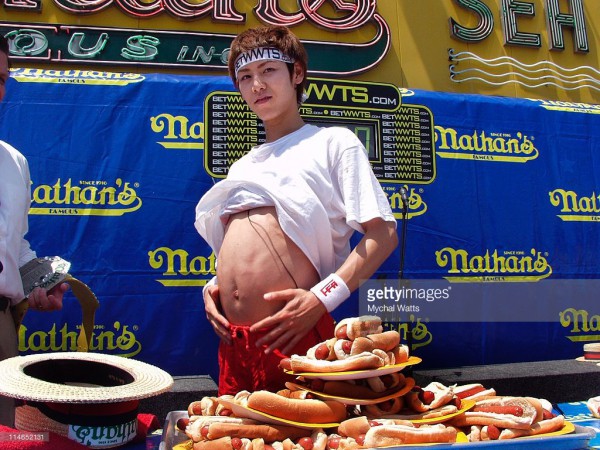 Мда. Судя по кубикам пресса на первой фотографии, хотдоги эти проходили у него через организм, не заморачиваясь на такую ерунду, как переваривание. И хоть опять в продажу!