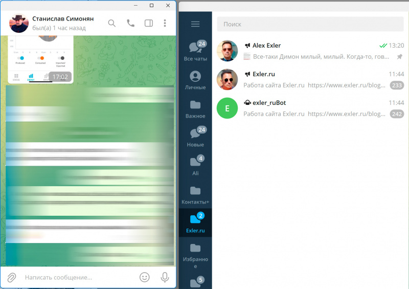 Многооконные чаты в клиенте Telegram