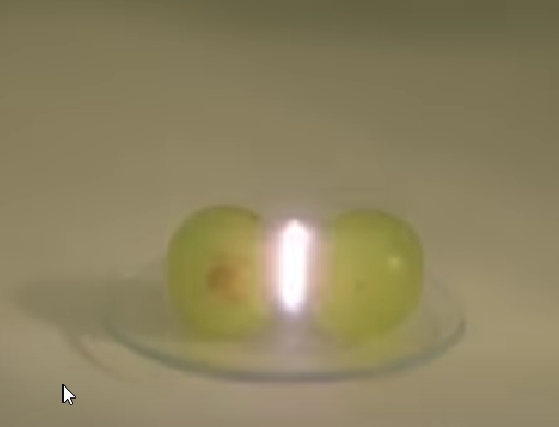 разрежьте виноградинy и положите половинки в контакт друг около друга в микроволновку. Насладитесь результатом. П.С. можно и не разрезатЬ а просто две.