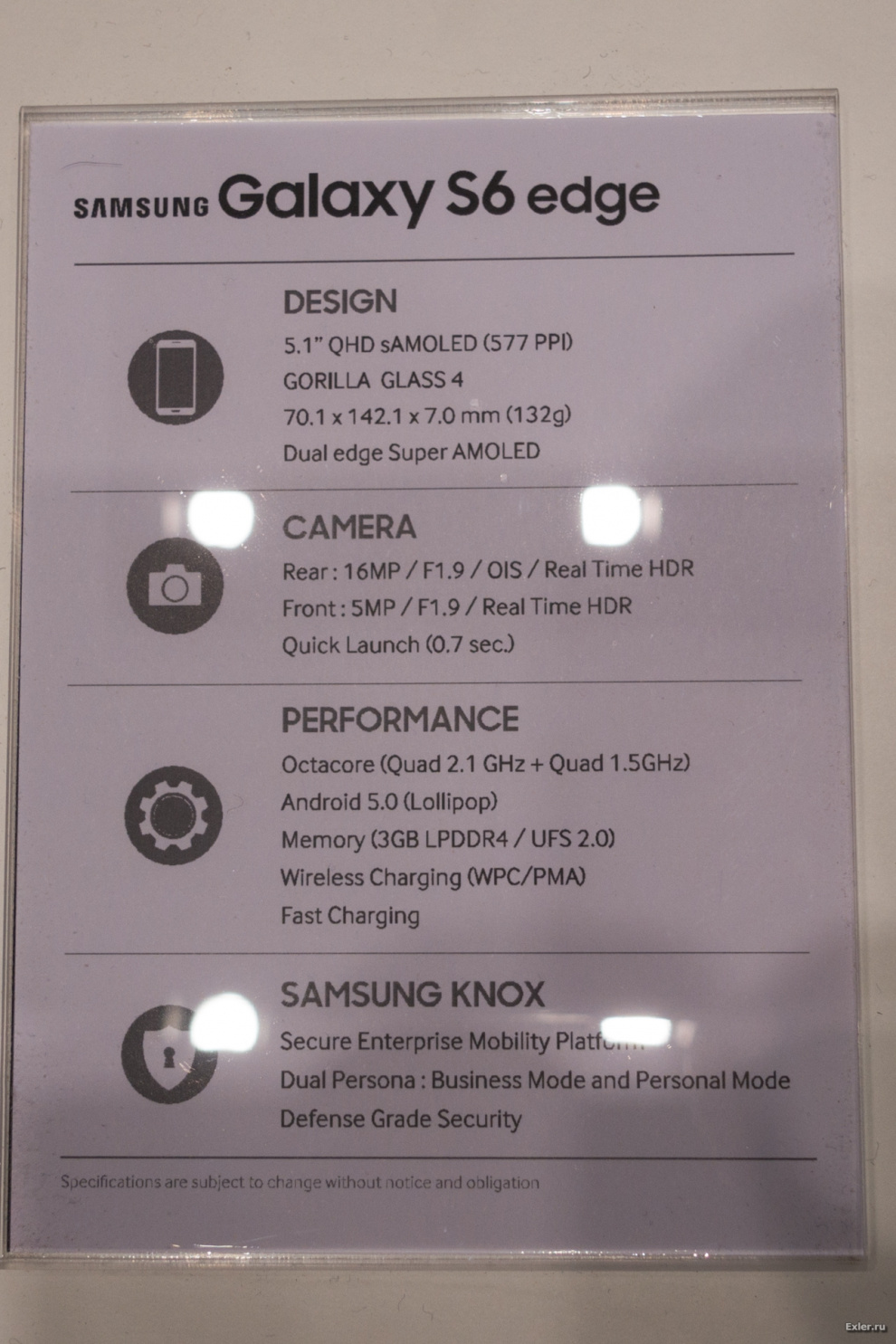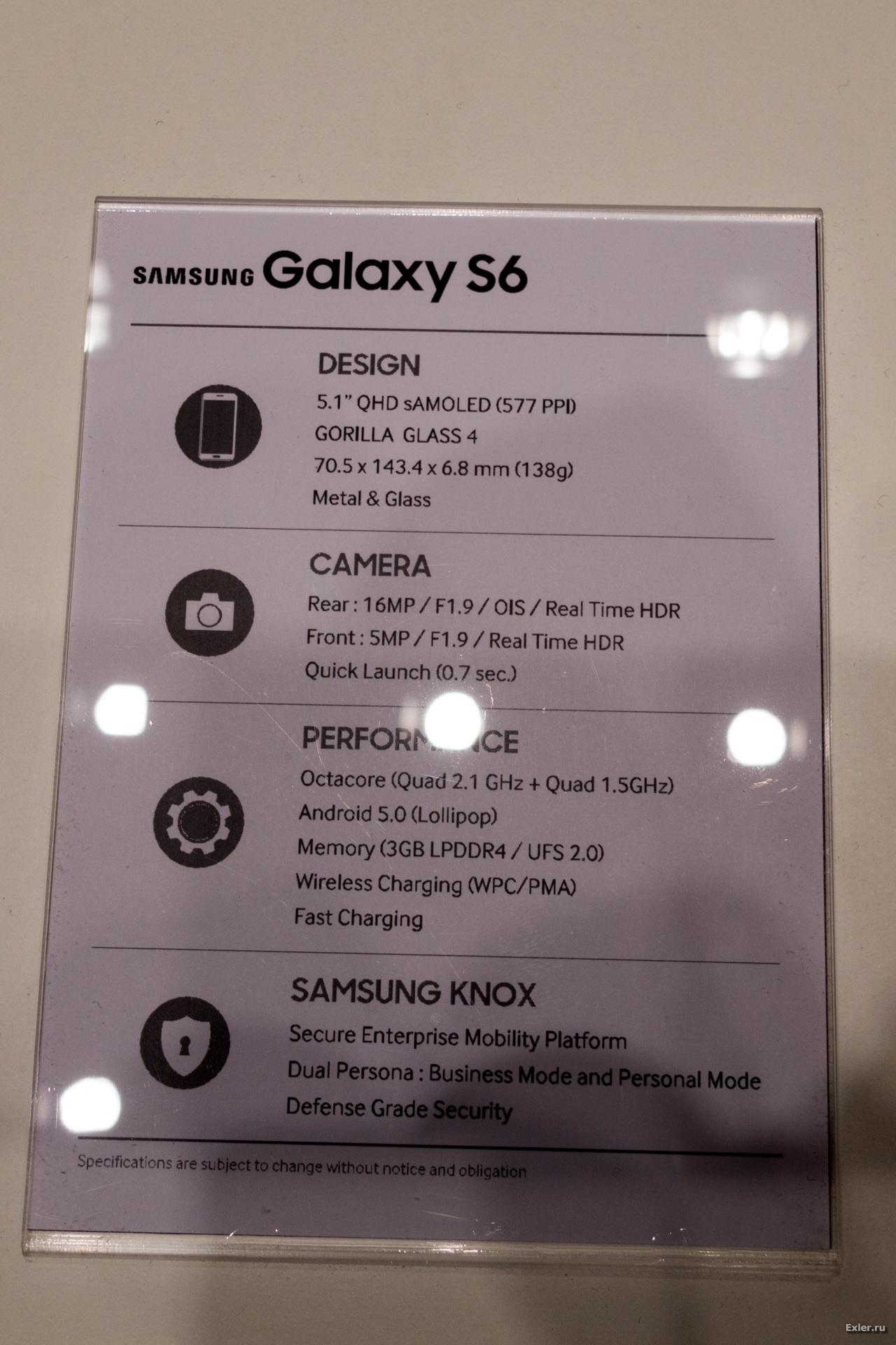 Гвоздь программы у Samsung, конечно, был новенький Galaxy S6. Вот его характеристики.