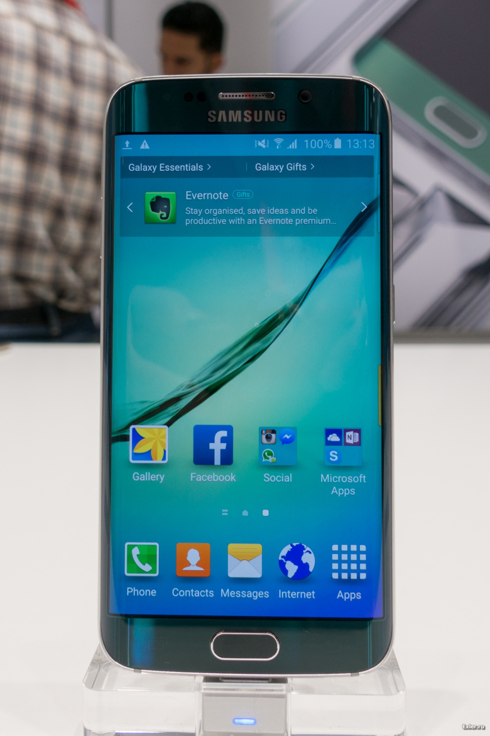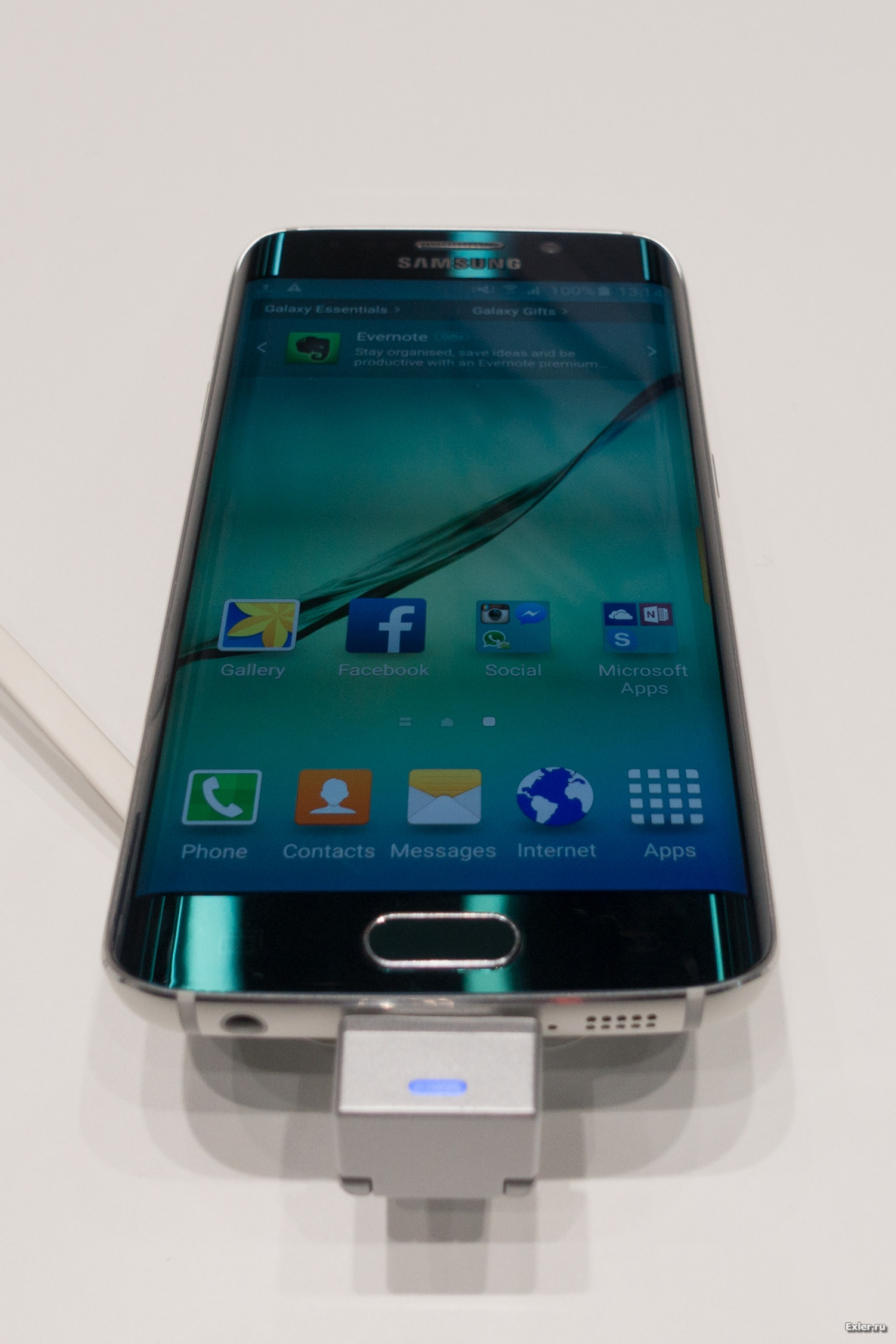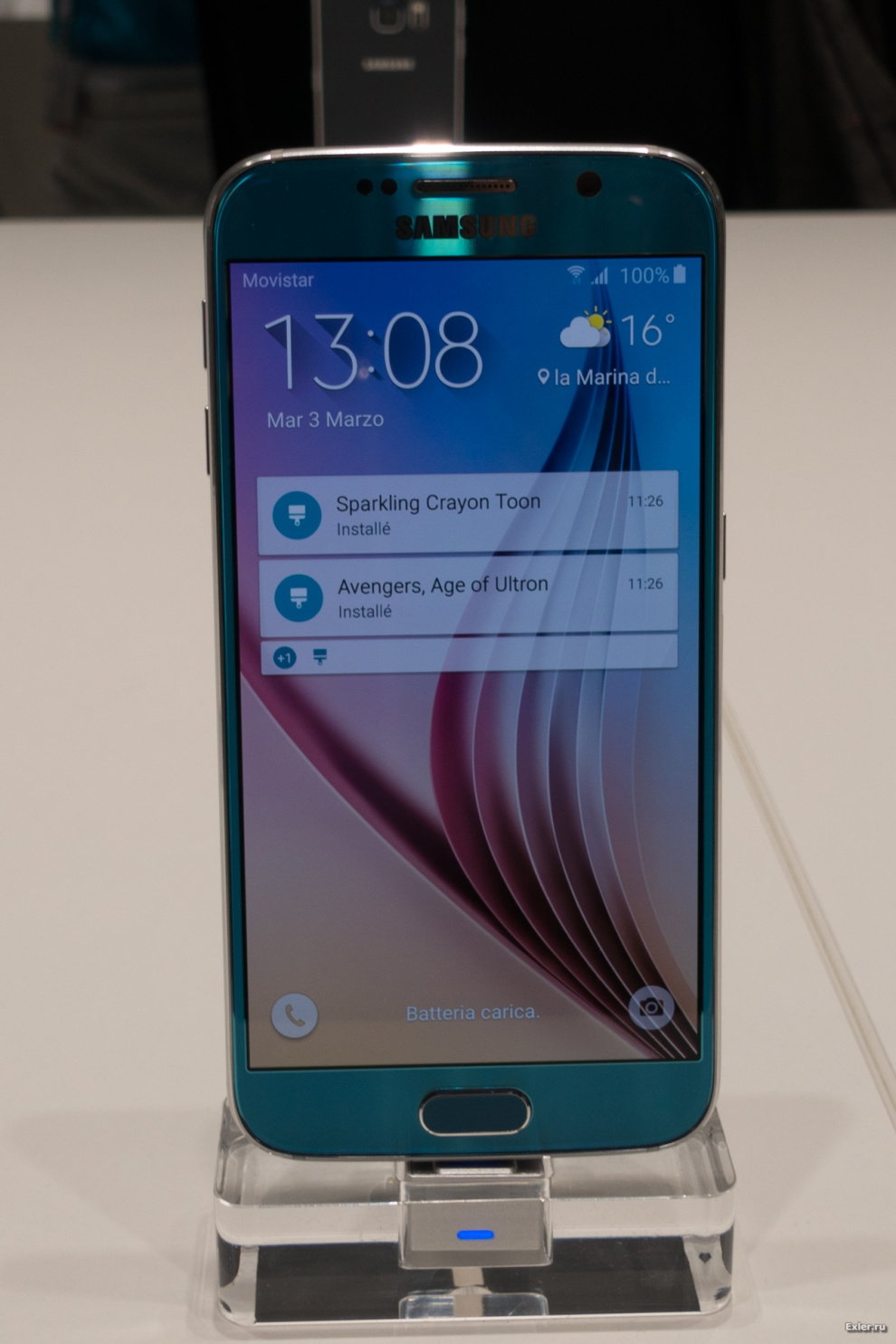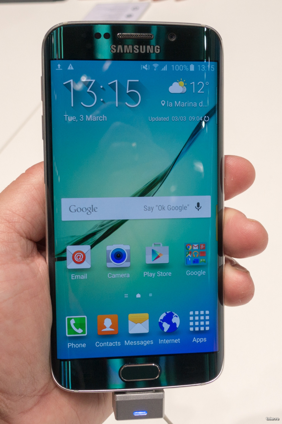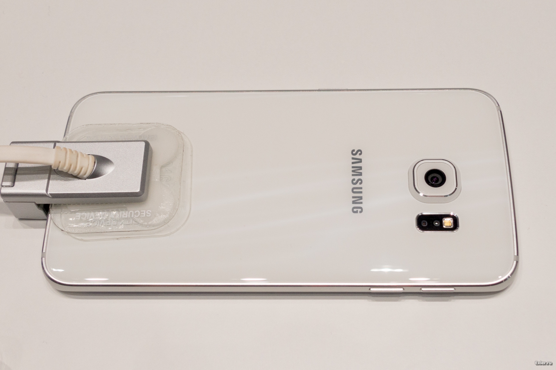 Вот он, красавец. Ну и, конечно, тут сразу обращает на себя внимание явное сходство дизайна S6 с эпловским iPhone 6. Если учесть, что iPhone 6 этот вариант дизайна был как минимум очень спорный (смартфон с ним превращается просто в какой-то обмылок), то не очень понятно, на черта следовать дурацким чужим идеям, когда уж у Samsung своих идей всегда хватало. (Понятно, что дизайн - не самая сильная их сторона, но тем не менее.)