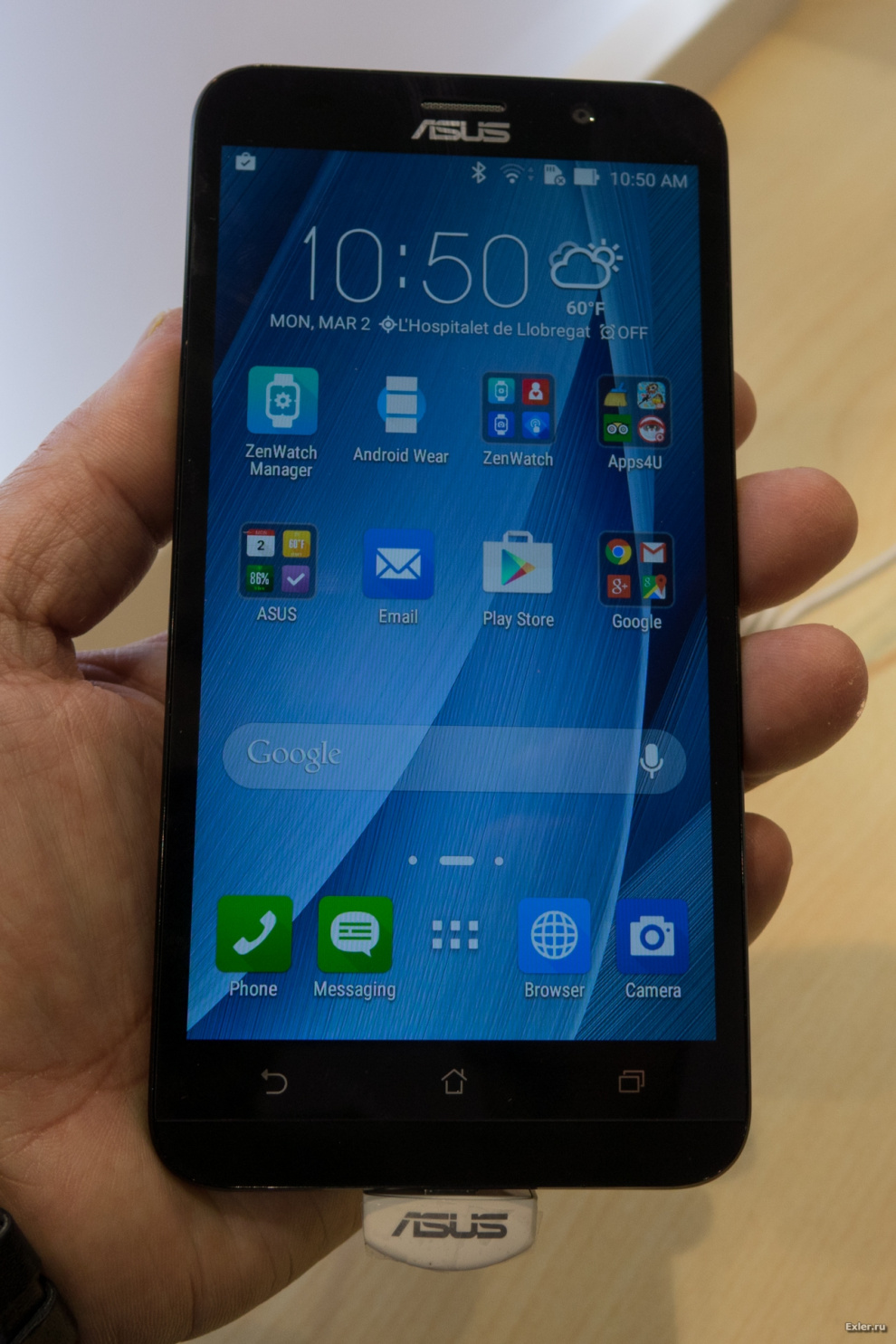 ASUS Zenfone 2. На процессоре Atom. 5,5" IPS 1280x720. С поддержкой LTE, батарея 3000 мАч. Насколько я помню первый Zenfone - из крепких середнячков. Этот надо потестировать - они там обещают какие-то особые возможности камеры при съемках в темноте, режим HDR (тоже мне, удивили), ну и так далее. Выглядит скучно, а как работает - надо изучать. Попробую при случае.