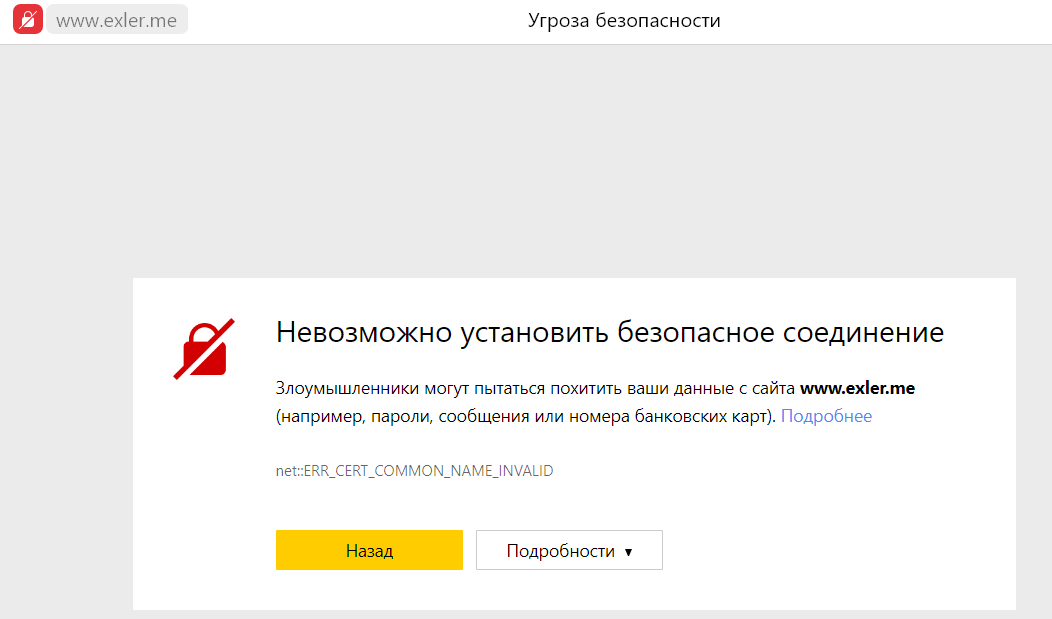 "Подробности" нажмите. Увидите, что на exler.me просто сертификат от сайта exler. ru. Хотя он потом просто перекидывает на exler.es.