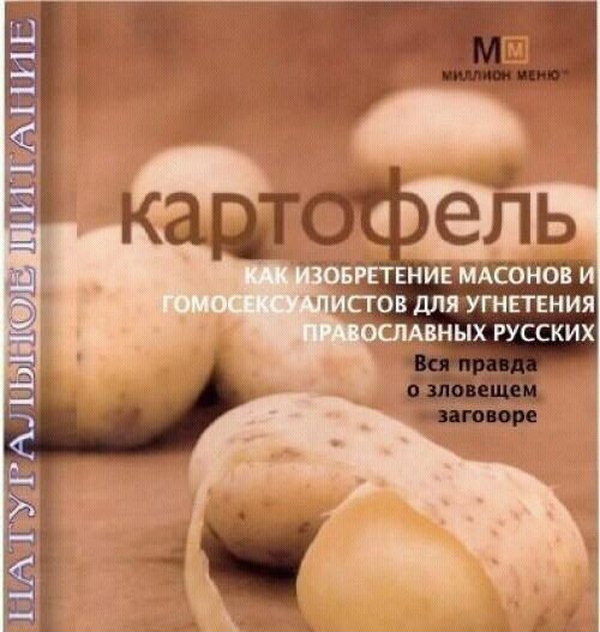 Самый расистский продукт — это, без сомнения, картошка. Подброшенный из проклятой Америки и навязанный европейцам (в том числе и русичам) вместо традиционных репы и редьки. Недаром гордые и свободолюбивые русичи устраивали картофельные бунты, борясь с богомерзким продуктом, чуждым его православной душе. Увы, сил отстоять репку не хватило.