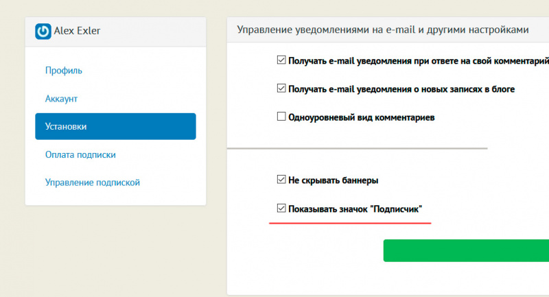 Для тех, кто по каким-то причинам не хочет, чтобы рядом с его ником ставился такой значок, в личном кабинете можно убрать соответствующую опцию - значок отключится.