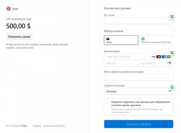 После этого менеджер выдала ссылку на эквайринг на оплату $500.