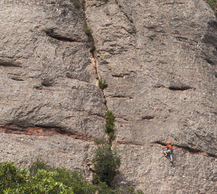 Посмотрите на этот кадр. Видите человек лезет на скалу? Там таких много - скалы очень популярны среди альпинистов-скалолазов.