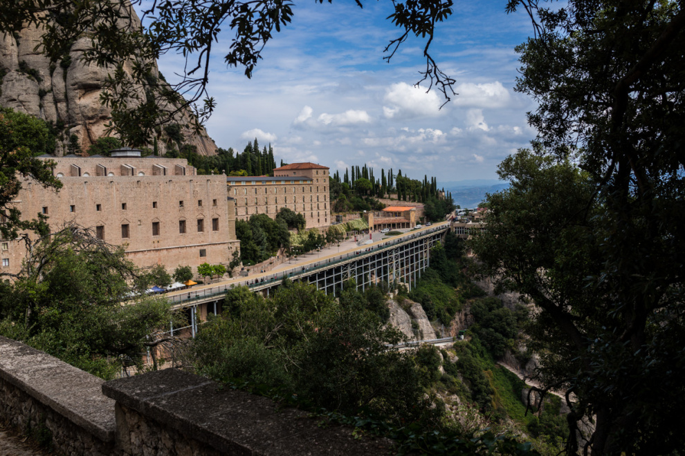 Вид на монастырь, мост, подъезд к монастырю и станция, куда туристы прибывают с подножья.