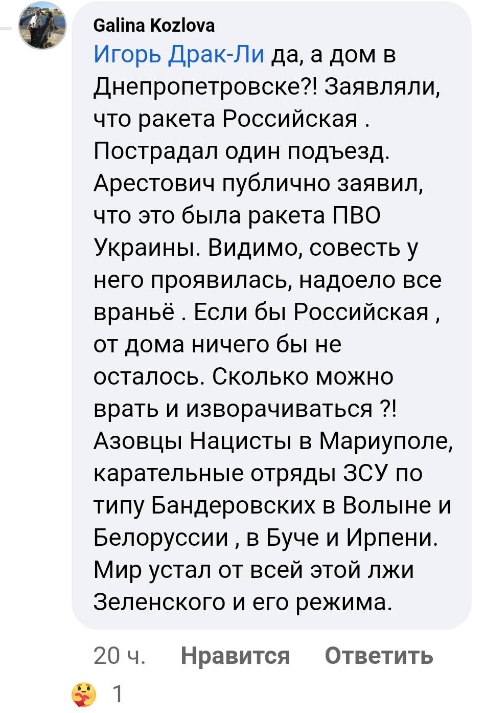 То есть эта дамочка была в Киеве, она видела своими глазами, что там творила рашистская армия, и она с трудом выбралась из всего этого ужаса. Но при этом - надо же, "столкнулась с массой негатива с той стороны". А что случилось? Но зато съемками в этой чудовищной мерзости она закрыла свой гештальт. Ну, молодца, скажем мы, что закрыла.