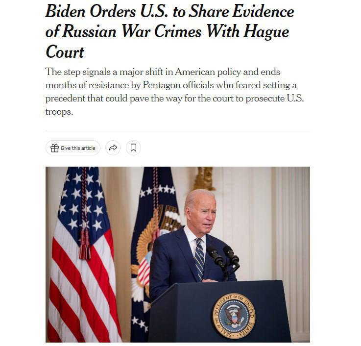 "Байден приказал передать доказательства военных преступлений россиян в Украине в Международный уголовный суд, - The New York Times.