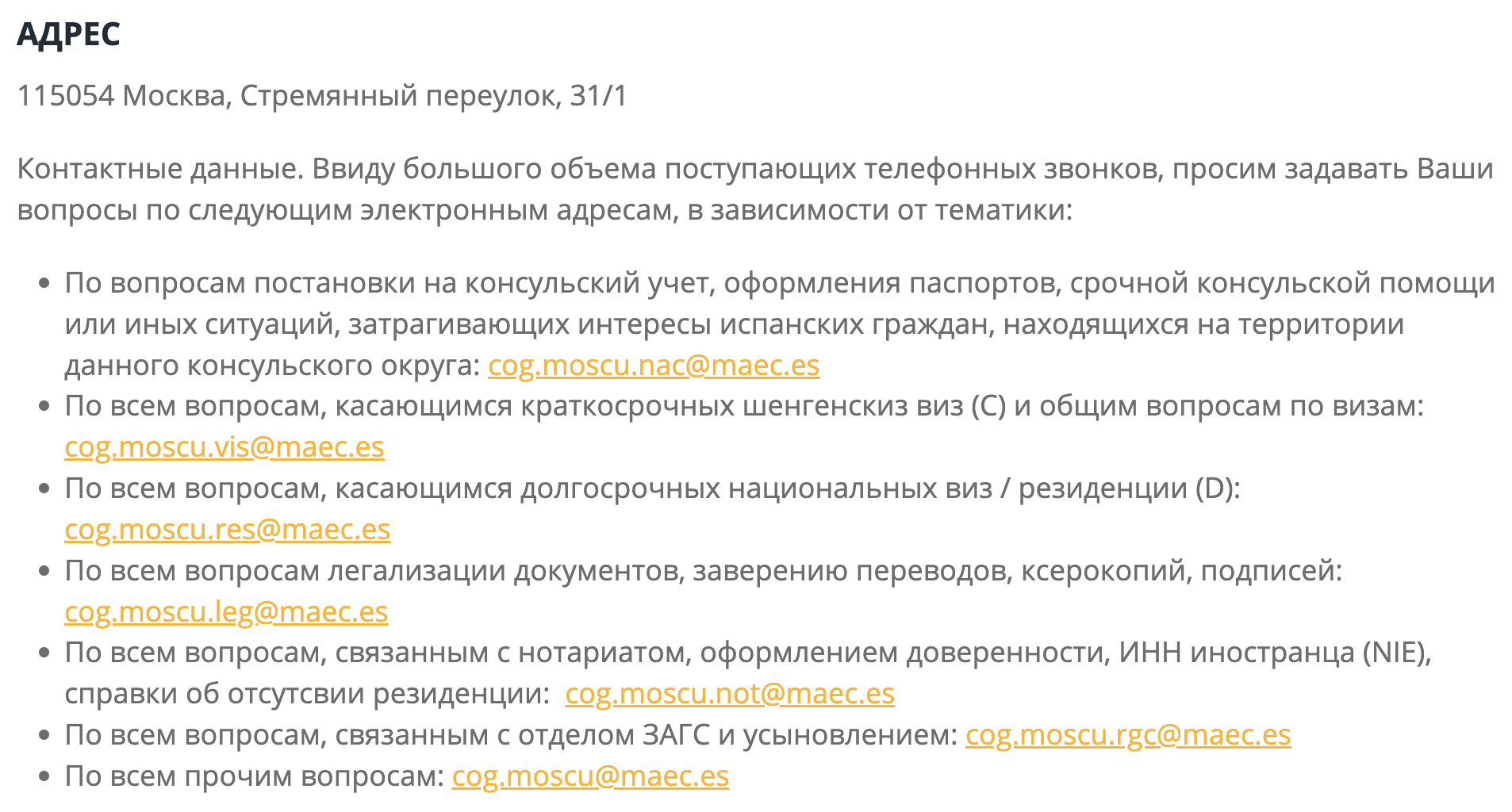 Так задайте вопрос в письме на адрес cog.moscu.res@maec.es, что вам мешает?