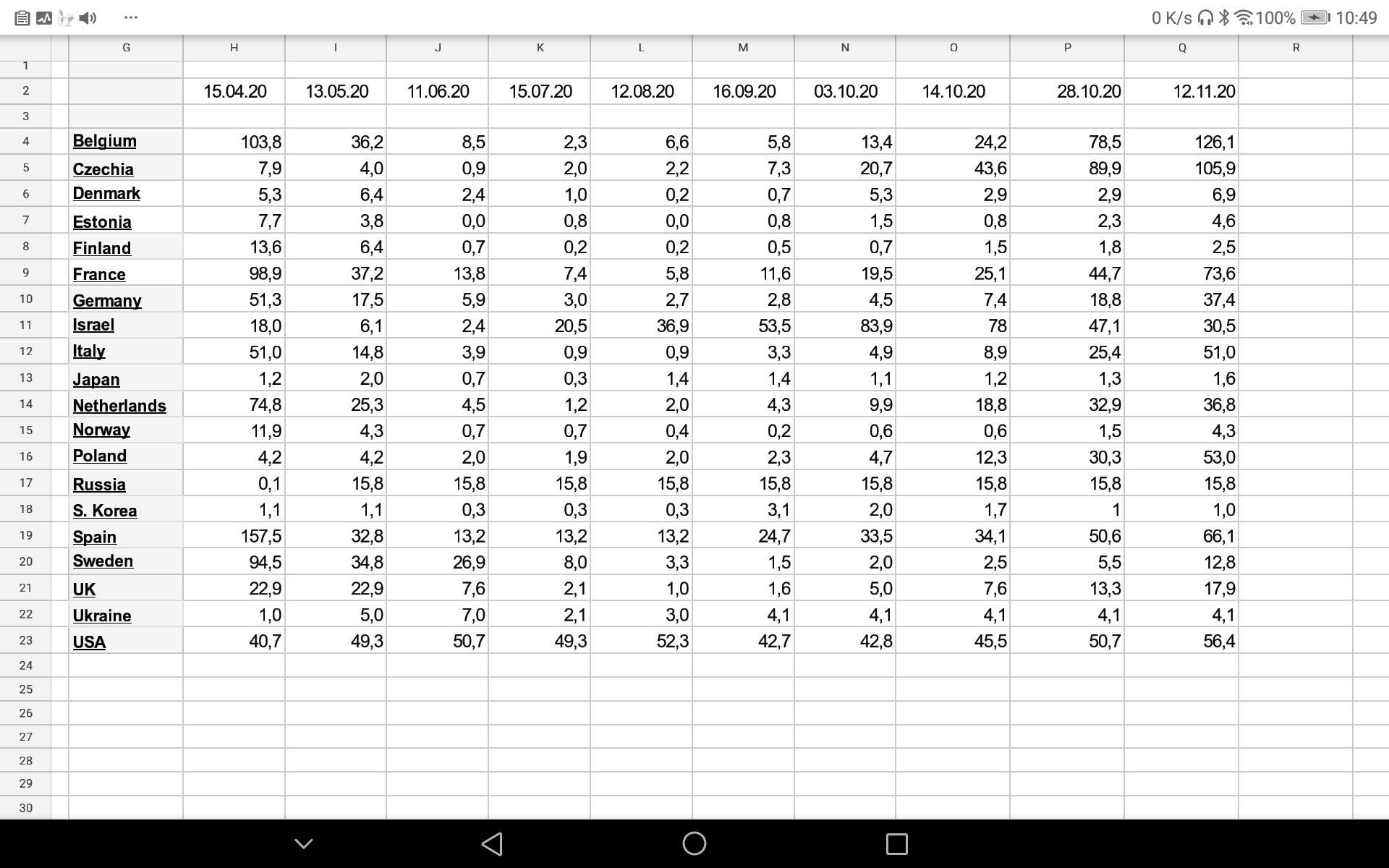 Везде продолжается рост в 1.5-2 раза за 2 недели. Исключения: Ю. Корея, Япония. По-прежнему "тормозит" Израиль. Притормозили также Испания, Великобритания Чехия