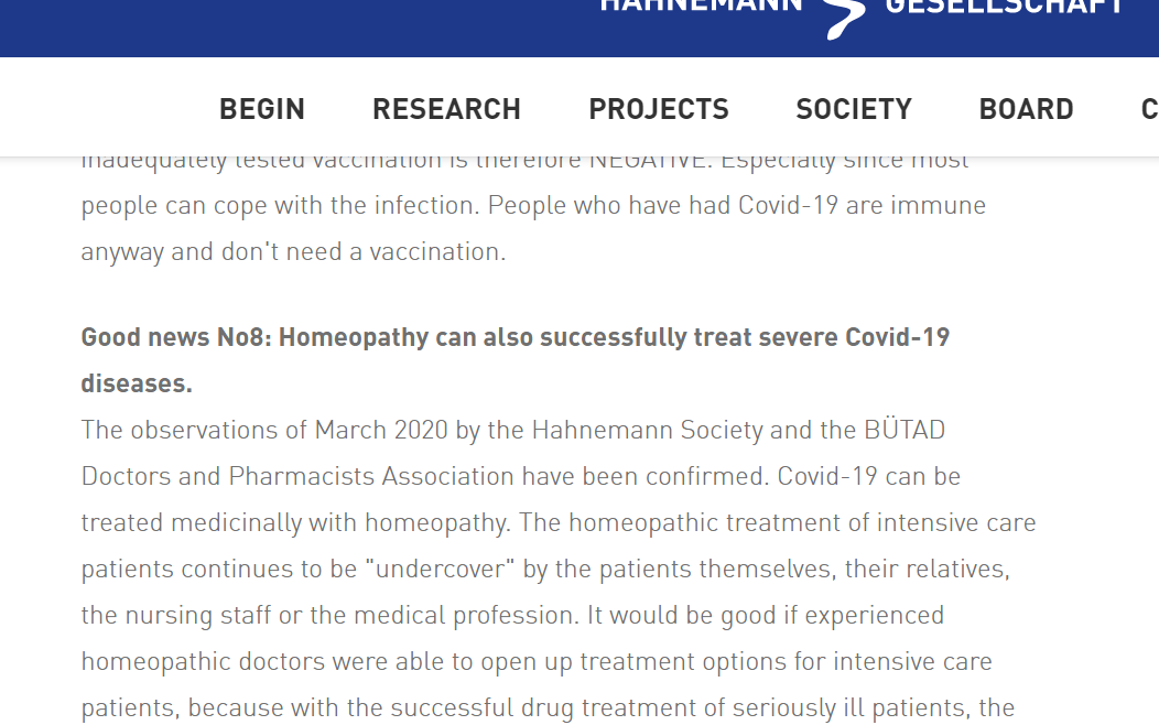 Заодно уж почитай советы и новости от немецкого общества гомеопатов. Там все, как ты любишь -- маски не работают, херд иммюнити, карантин не нужен, "научное сообщество" требует разоблачения сговора и пр. Но самое главное -- гомеопатия -- лучшее средство от коронавируса!