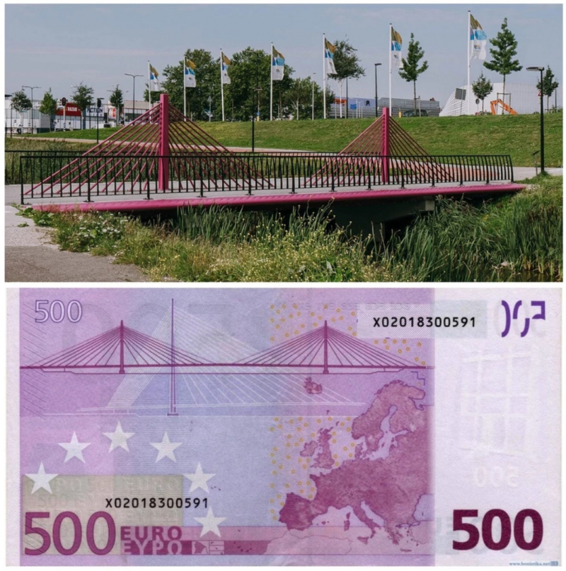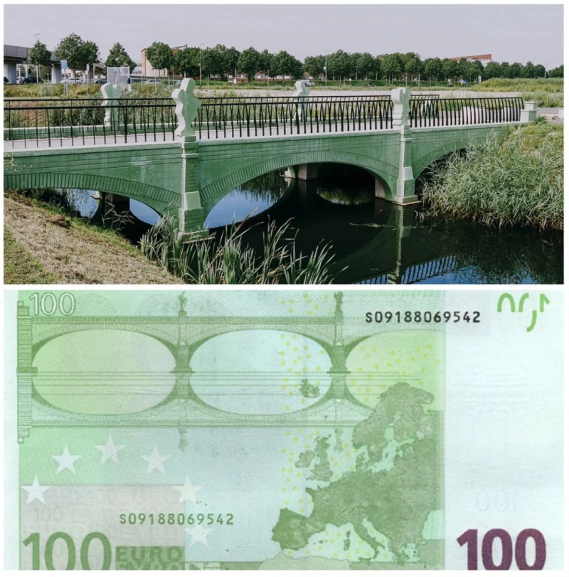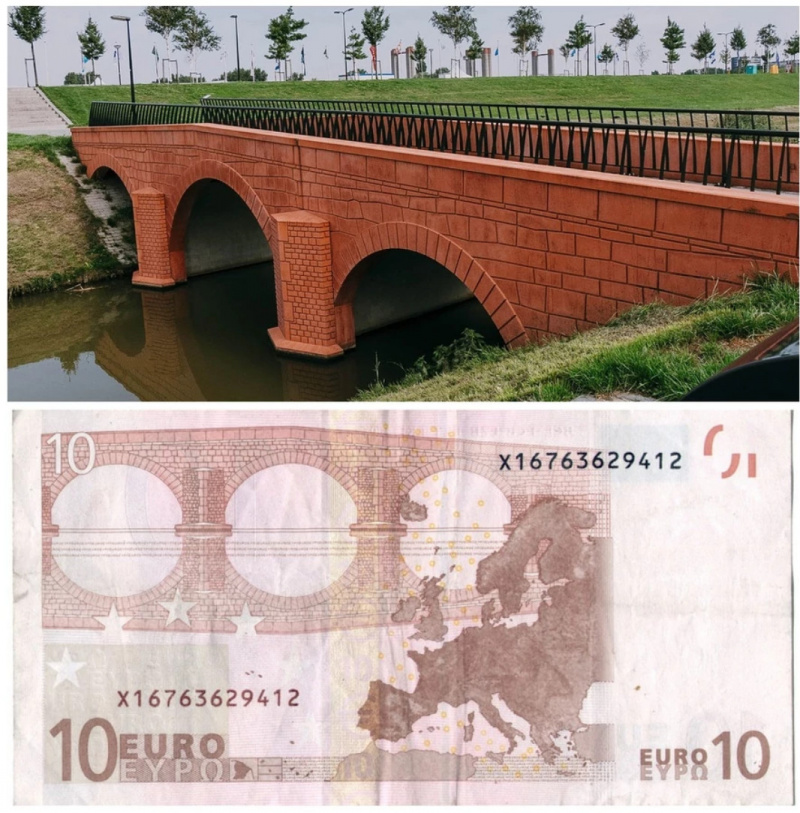 Однако первоначально никаких таких мостов не существовало. В 2002 году Европейский центральный банк начал разрабатывать дизайн евро, на купюрах было решено изобразить какие-то мосты - в качестве символа связи между странами ЕС.