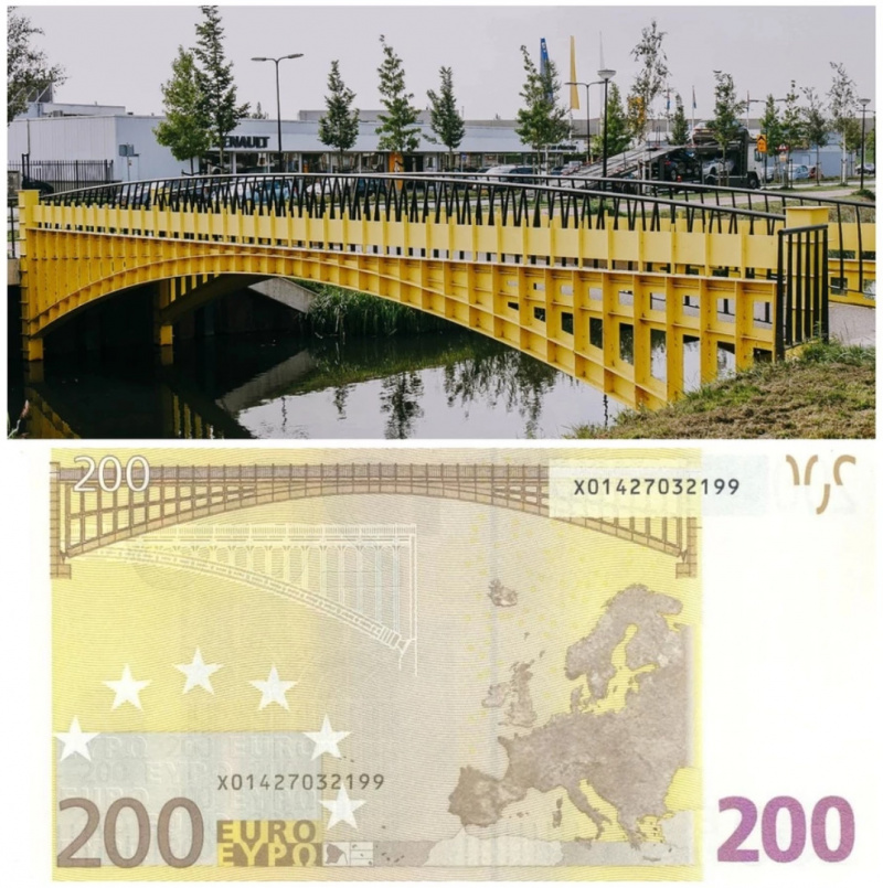 У Анны Монгайт в ТГ наткнулся на историю, о которой раньше не слышал. Много лет я пользовался банкнотами различных номиналов с евро, и как-то никогда не задумывался, что за мосты изображены на этих банкнотах. Думал, что это какие-то реально существующие мосты.