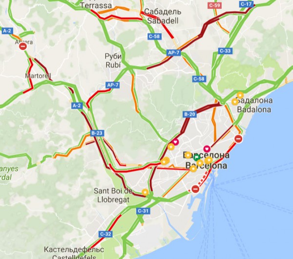 P.S. Вне Барселоны вижу одно перекрытие на трассе А-2 - там дикие пробки. Также в Барселоне в трех местах перекрыли Ронду Литораль - трассу, идущую вдоль моря. Пробки и там, и по всей Барселоне страшенные. Постоим за Индепенденсию, друзья!