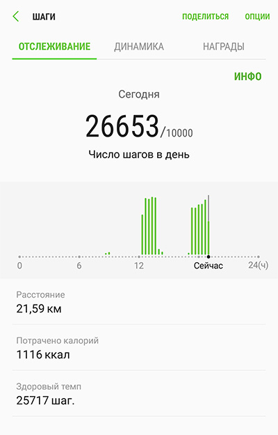 26 тысяч? Ничего так. У меня жена ходит по 20-22 тысячи в день только на работе (не делая специальных 10-километровых прогулок).