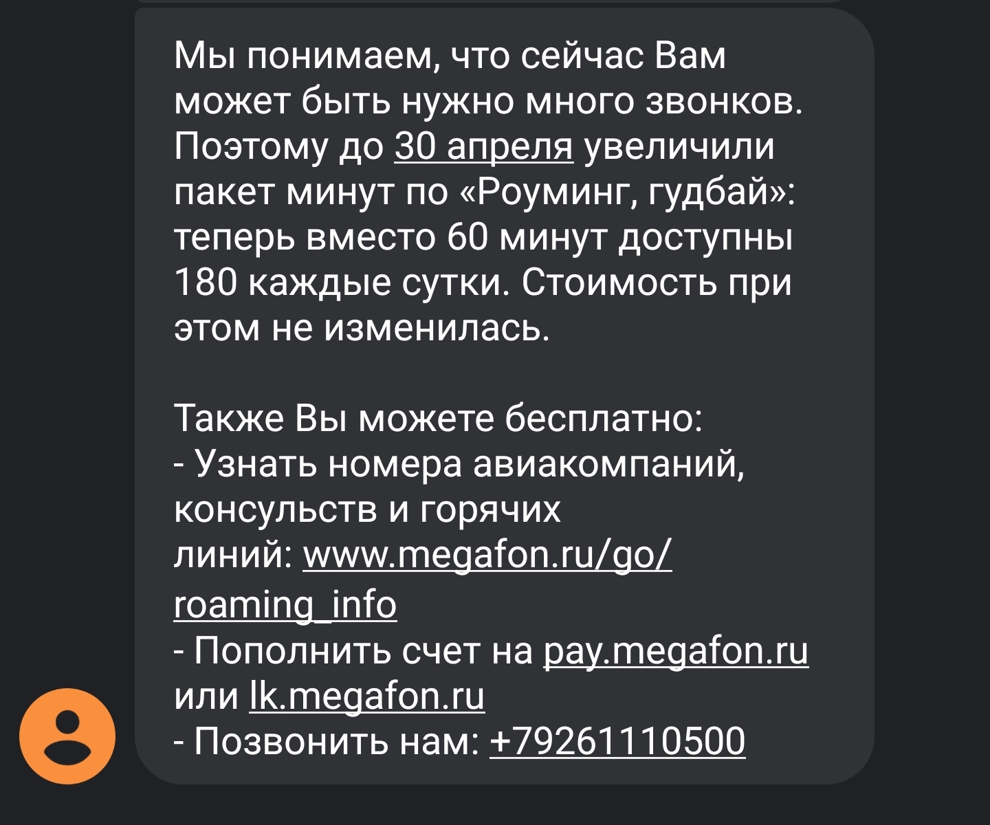 Ну, благородно. У кого Билайн, Мегафон или Теле2, и кто при этом находится за границей - приходило от других операторов такое?