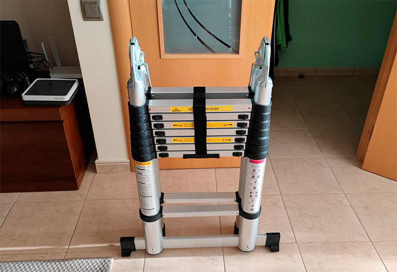 А раскладывается аж на пять метров, если использовать как приставную. Плюс может работать стремянкой. Удобная штука.