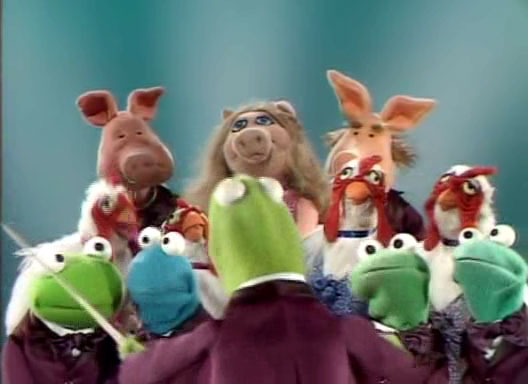 В исполнении хора маппетов звучит проникновенная ария Temptation (соблазн). Солирует мисс Пигги. Правда, она в какой-то момент сильно увлеклась...