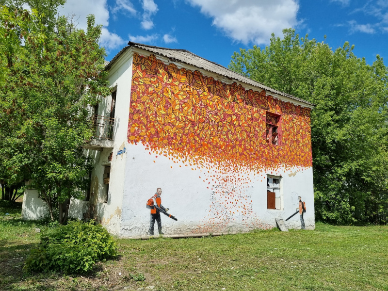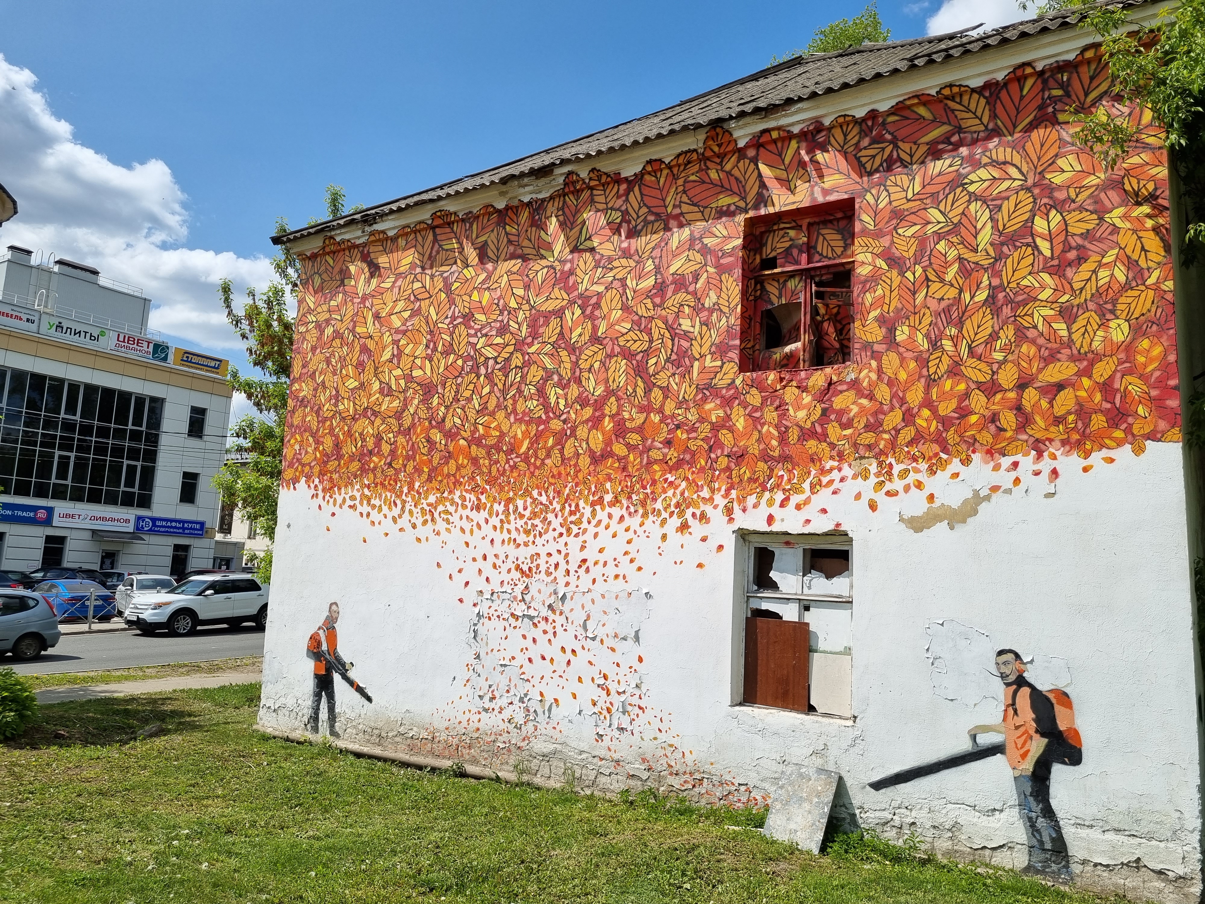 Читатель Игорь Кужлев во Владимире сфотографировал вот такой чудесный мурал, на котором Ван Гог и Сальвадор Дали убирают опавшие листья. Представляю, как это все осенью смотрится, когда еще и желтые-красные листья вокруг.