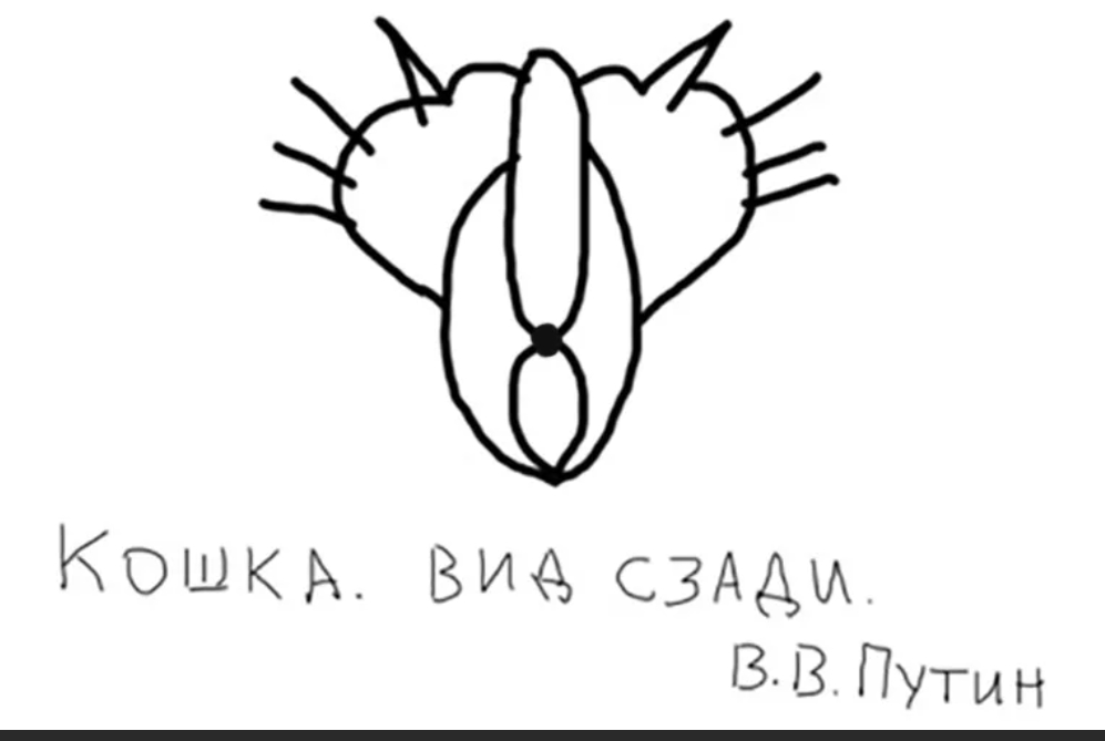 помните он кошку детям сзади рисовал на доске в виде п..ды. это его уровень