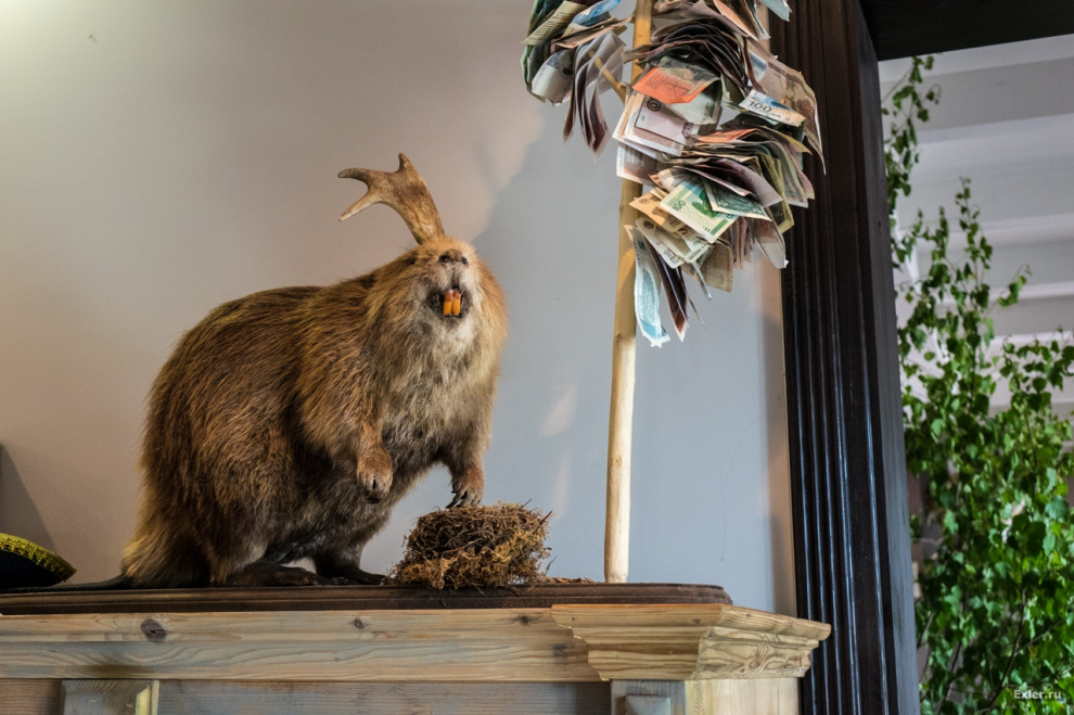 Бобер с рогами (в него выстрелили косточкой от оленя) и денежное дерево.