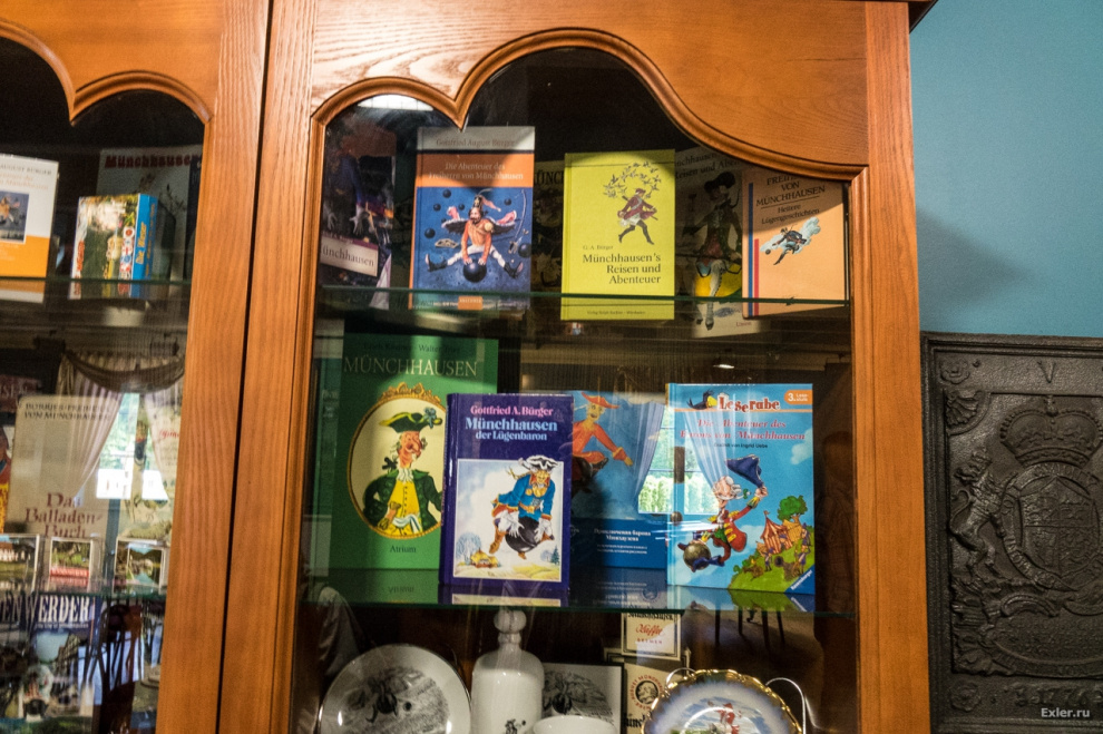 Музей-усадьба - очень симпатичный, если будете в тех краях - рекомендую заглянуть. Что интересно, на месте этой недавно выстроенной усадьбы когда-то действительно стоял дом, в котором реальный Карл Фридрих Иероним барон фон Мюнхга́узен со своей женой Якобиной прожил шесть лет, причем и венчался с ней он в этих краях. (Остальное время Мюнхгаузен жил в Боденвердере, Саксония.)