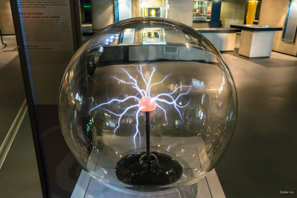 Самая популярная демонстрация. Если приложить к верхней части шара руку, то молнии будут идти к этой руке. Детишкам очень нравится.