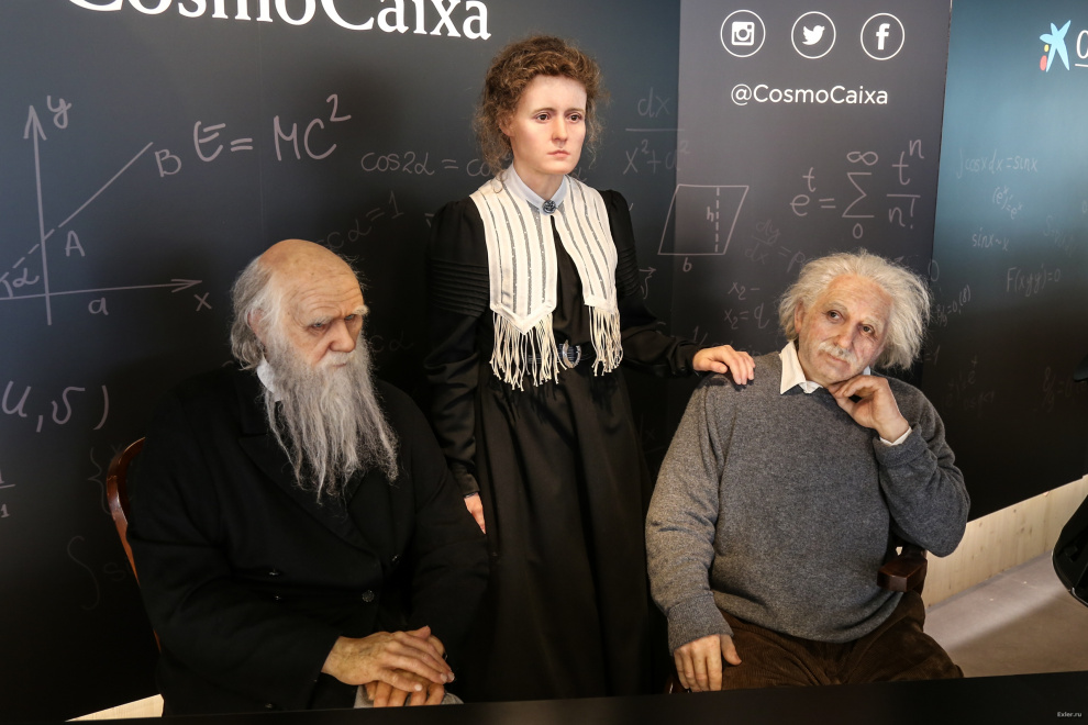 В ресепшн посетителей встречают не только работники музея, но и Эйнштейн с Дарвиным. Плюс еще совсем недавно к ним присоединилась Мария Склодовская-Кюри - им же скучно было без женского общества. (Далее все фото, как обычно, кликабельны.)