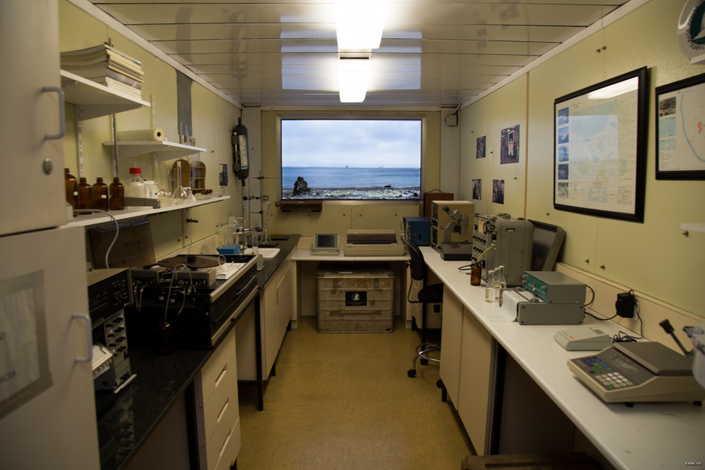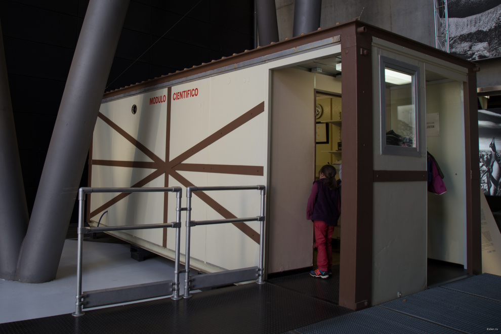 Временная экспозиция - база в Антарктике, где проводили исследования и наблюдали за пингвинами. Вот тот самый исследовательский вагончик, который туда был заброшен.