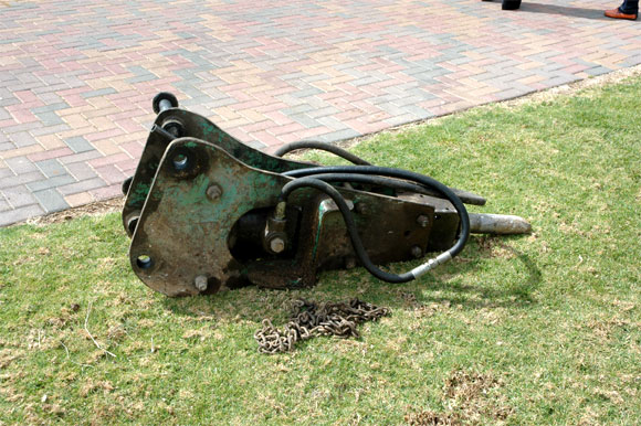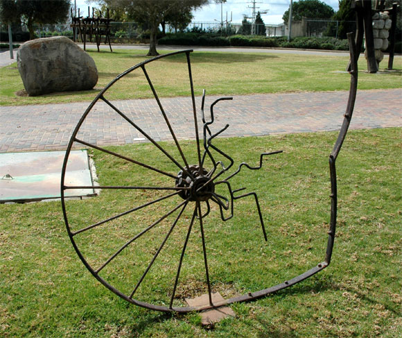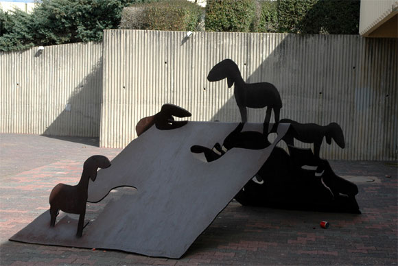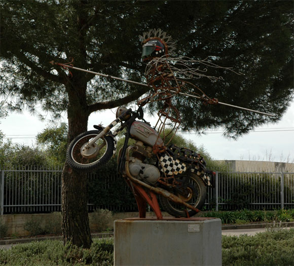 Нижеследующая скульптурка нам с Лесным особенно понравилась. Мы долго ее фотографировали с различных сторон, пока нам не объяснили, что это просто деталь от трактора, который там неподалеку откапывал шекель.