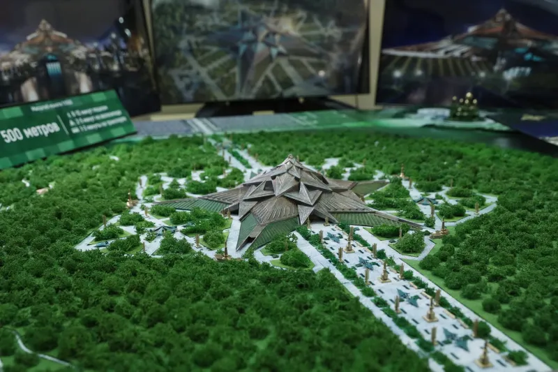 Министр обороны РФ Сергей Шойгу представил президенту России Владимиру Путину макет главного музея Вооруженных сил, который планируется построить в подмосковном парке «Патриот» (там также находится главный храм Минобороны). По проекту, это будет комплекс сооружений в виде звезды площадью почти 150 тысяч квадратных метров. «Это будет самый крупный музей», — заявил Шойгу (для сравнения, площадь Лувра в два раза меньше). (Отсюда.)