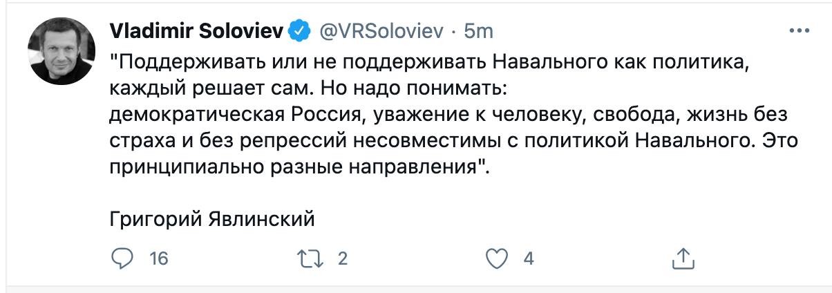 P.S. Что характерно, пропагандоны прогиб засчитали. Оппозиционную жизнь нужно прожить так, чтобы тебя процитировал Соловьев!