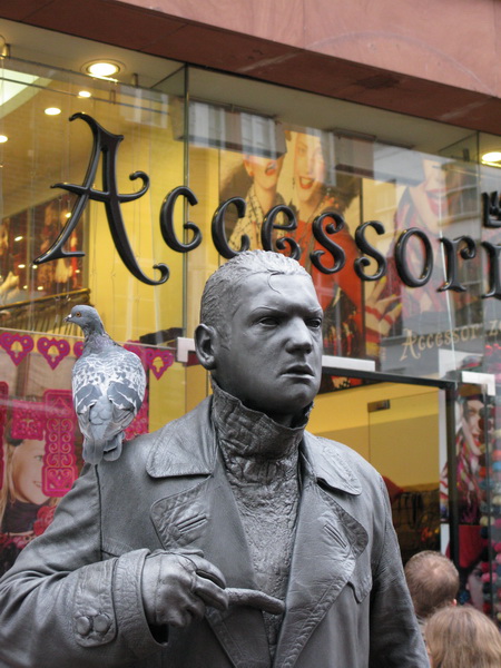 В Барселоне на их заменитой Рамбле тоже очень много живых сукульптур. Что мне понравилось, что там стараются избегать стандартных и скучных образов, очень много психоделичной или просто дурки: скульптура мужика без головы, с проткнутым мечом сердцем, а рядом столик. на котором "живая" голова, мужик весь в белой краске верхом на довольно высоком (1,5 метра постаментик) унитазе, большая колыбелька с младенцем внутри, с головой взрослого, и прочия прочия прочия....