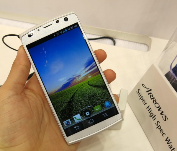 Из той же серии - пыле- и влагозащищенные смартфоны серии ARROWS X F-02E. Были представлены в белом и черном варианте, называются громко "Super High Spec Waterproof Smartphone". Характеристики впечатляющие: 1,7 ГГц четырёхъядерный процессор, 5" Full HD-дисплей, 16 Мп камера.
