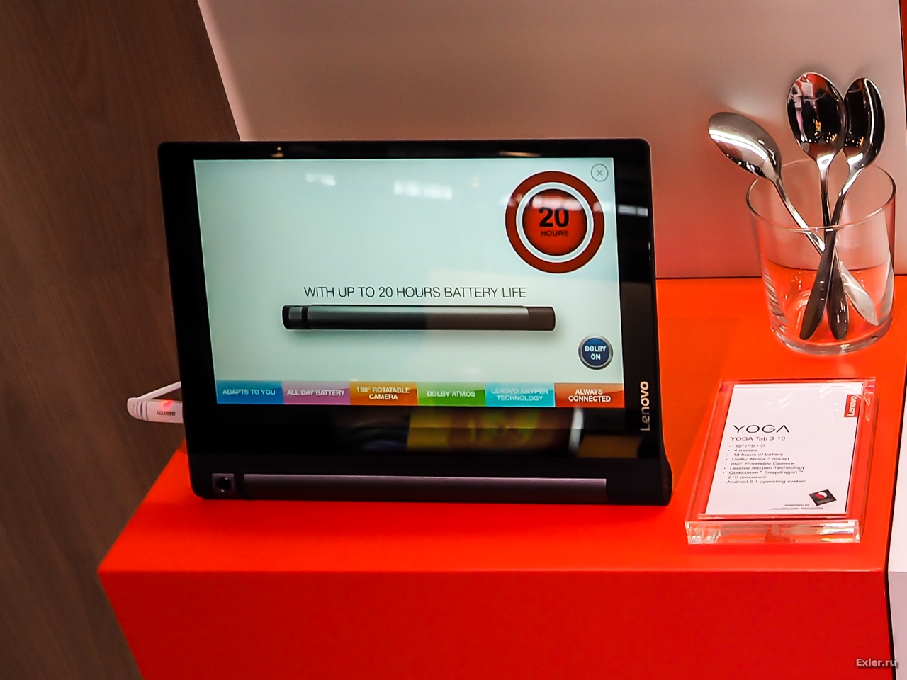 Lenovo Yoga Tablet 3 10. Его уже показывали на прошлой выставке. Там есть еще модель Pro, которая намного более интересная. Я ее себе купил, скоро будет подробный обзор - планшет того стоит.