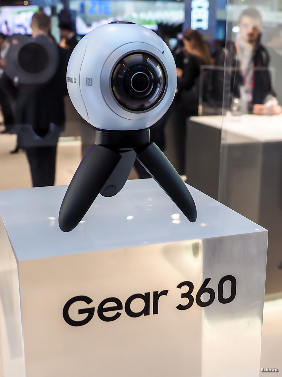 Самсунг показал свою камеру Gear 360 - для съемки панорам в 360 градусов. Модная тема, как и очки виртуальной реальности, которые демонстрировали почти все крупные производители.