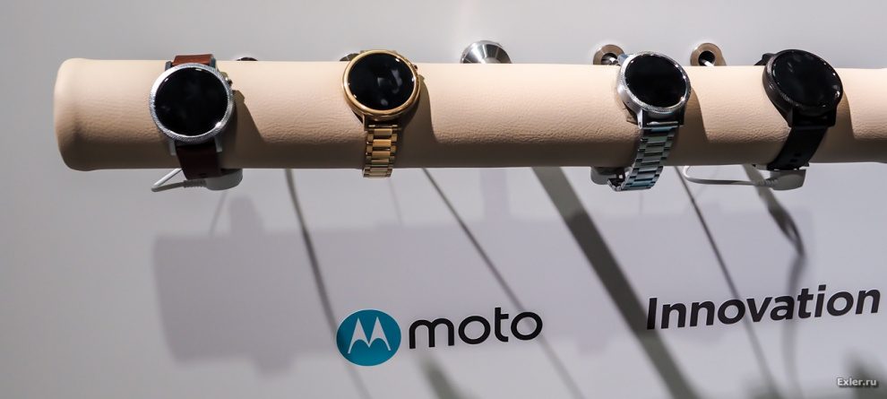 Стенд Motorola (бренд принадлежит Lenovo) с Moto 360 второго поколения в различных вариантах дизайна. Первые Motorola Moto 360 мне совершенно не понравились практически со всех точек зрения. Вторая версия слегка получше (убрали принудительное выключение), но тот же дурацкий срез внизу экрана Сам я сейчас использую Huawei Watch и ими вполне доволен.