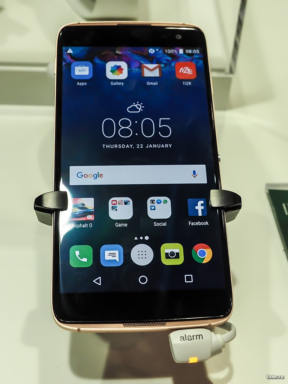 Стенд Alcatel Смартфон IDOL 4S. Хвалятся камерой, но на выставке ее не протестировать.