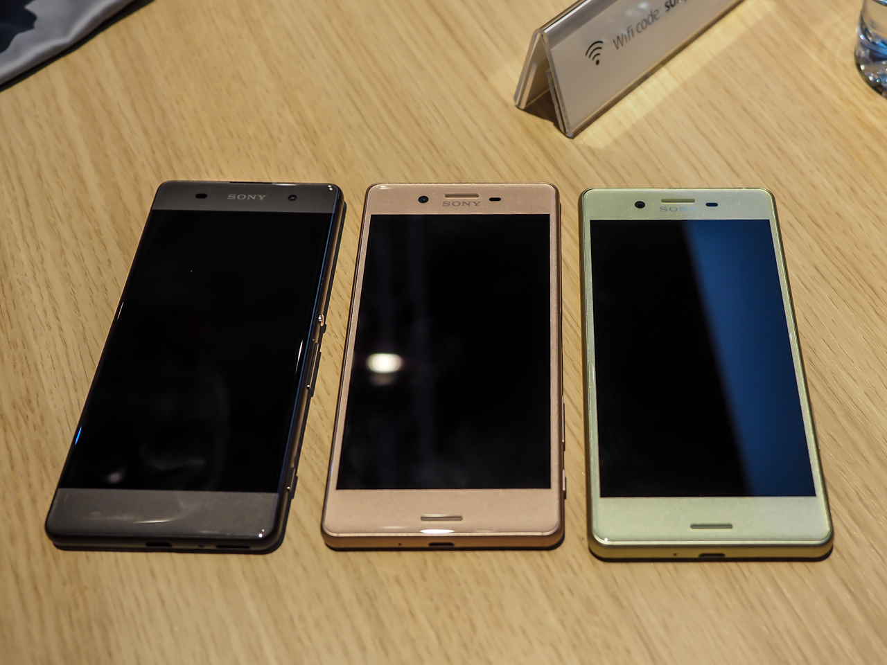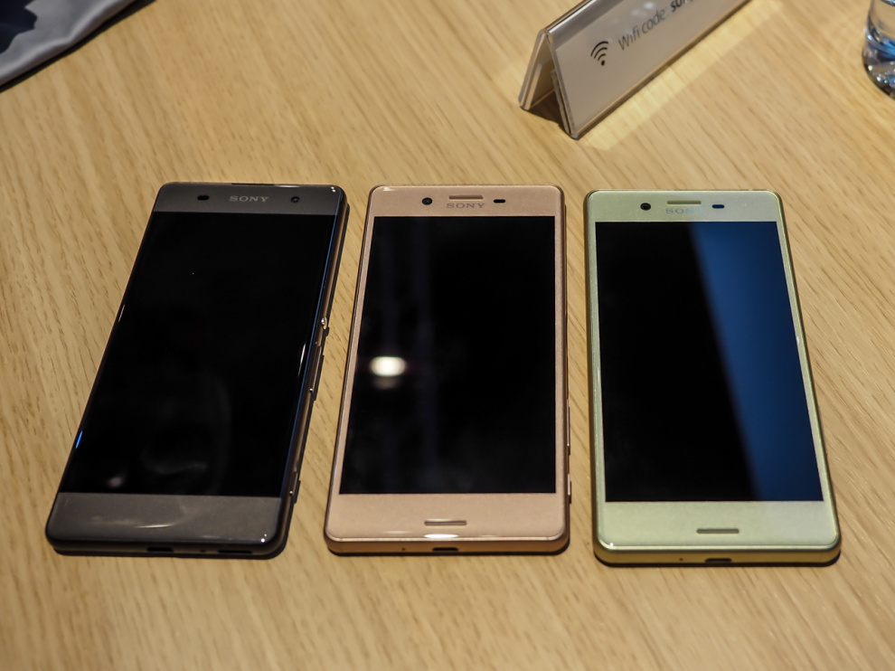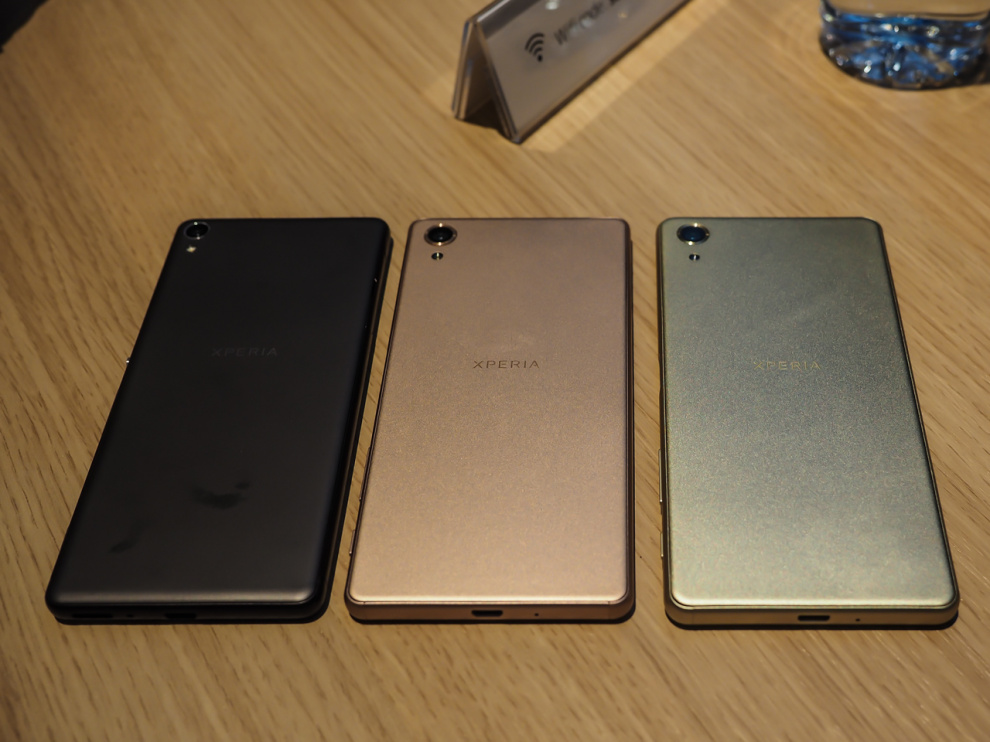 На фото справа налево Xperia X Performance, Xperia X и Xperia XA.