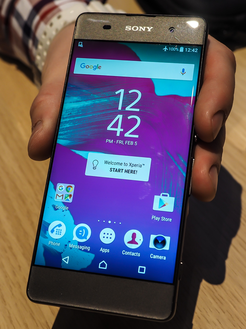 Кстати, больше всего мне понравилась именно младшая модель - Xperia XA. Она имеет пластиковый корпус, очень приятно лежит в руке, у ее дисплея почти нет боковых полей - смотрите сами. Плюс тут стекло 2,5D, скругленное по краям, что хорошо влияет и на внешнее восприятие смартфона, и на удобство хвата телефона рукой. (У остальных двух моделей тоже стекло 2,5D, но выглядит оно лучше всего именно на модели XA.)