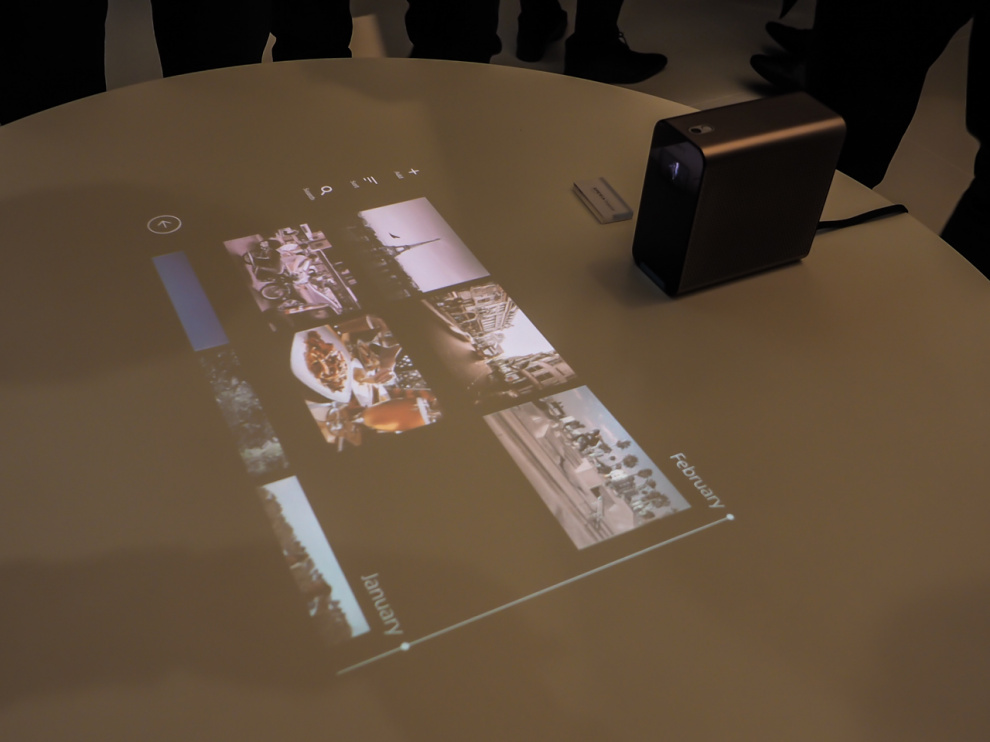 Еще одно новое устройство: проецирует на поверхность данные со смартфона/планшета, причем проекцией можно управлять пальцами: например, тыкать в картинку, чтобы она развернулась на весь экран.