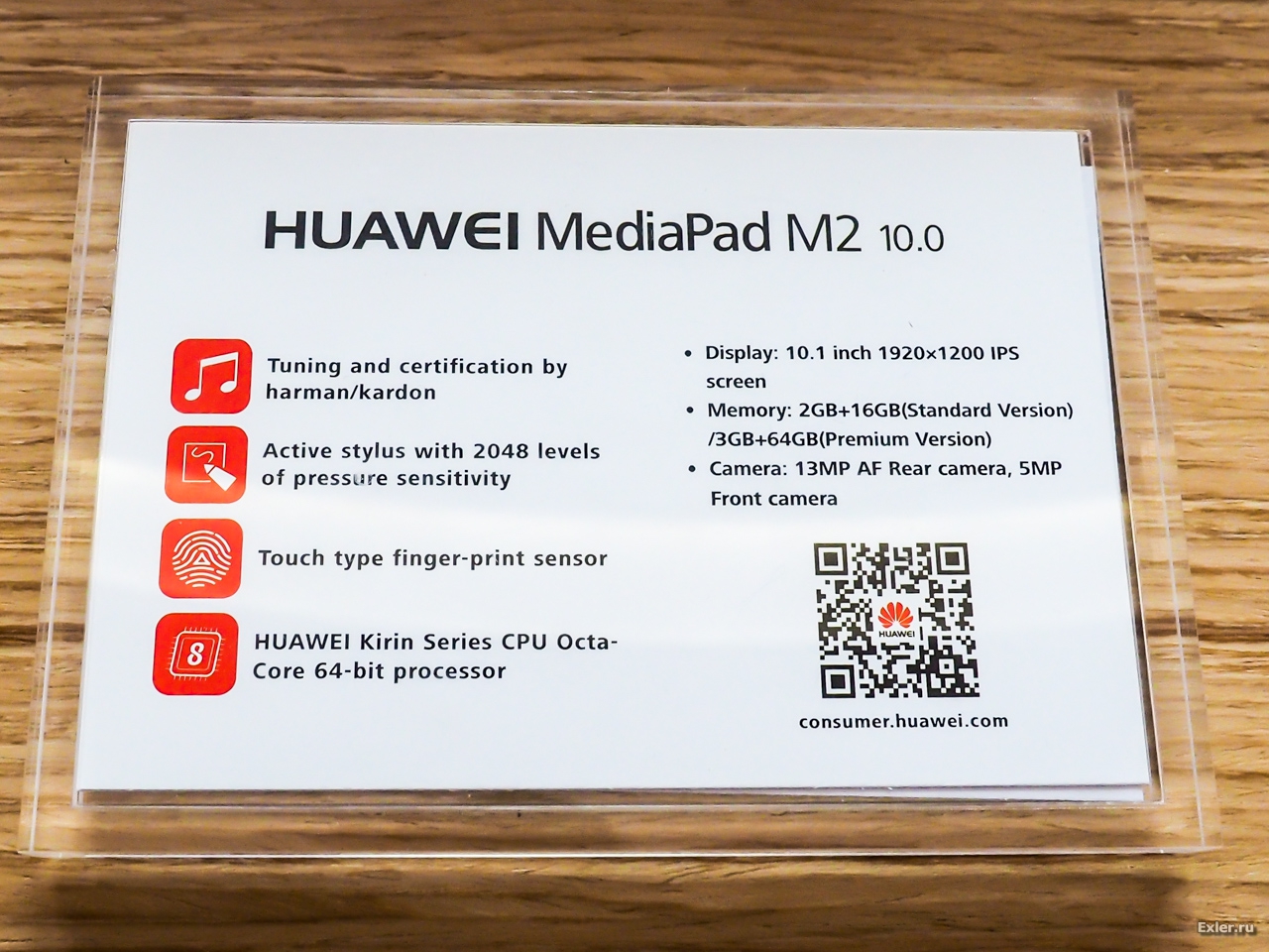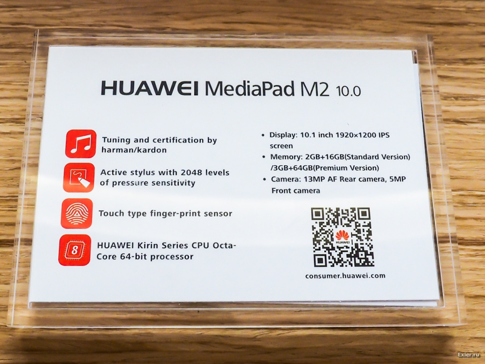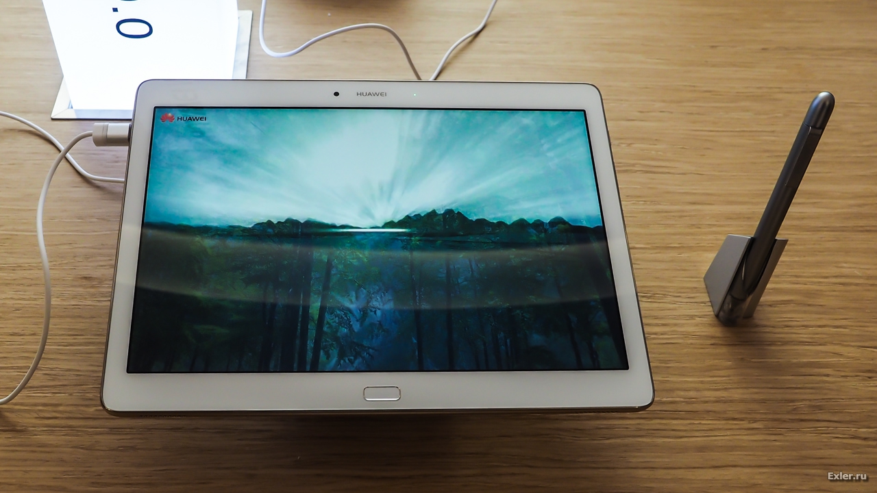 Десятидюймовый планшет MediaPad M2 10. Снабжен пером, у которого отслеживается до 2048 уровней нажатия. Есть сенсор отпечатка.