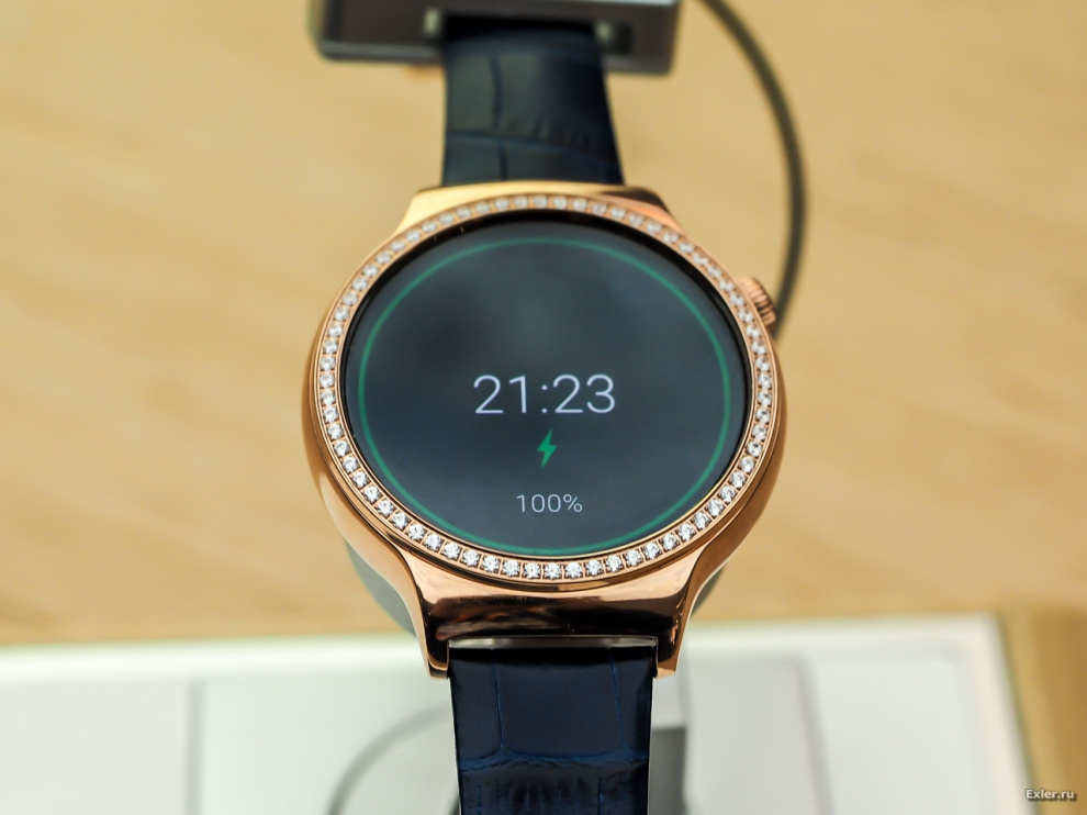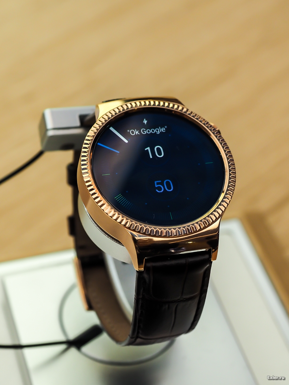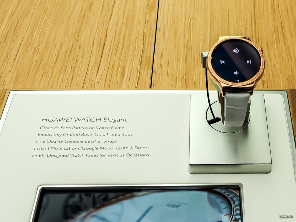 На этой выставке показали две модификации в позолоченном корпусе - модель Huawei Watch jewel и Huawei Watch Elegant.