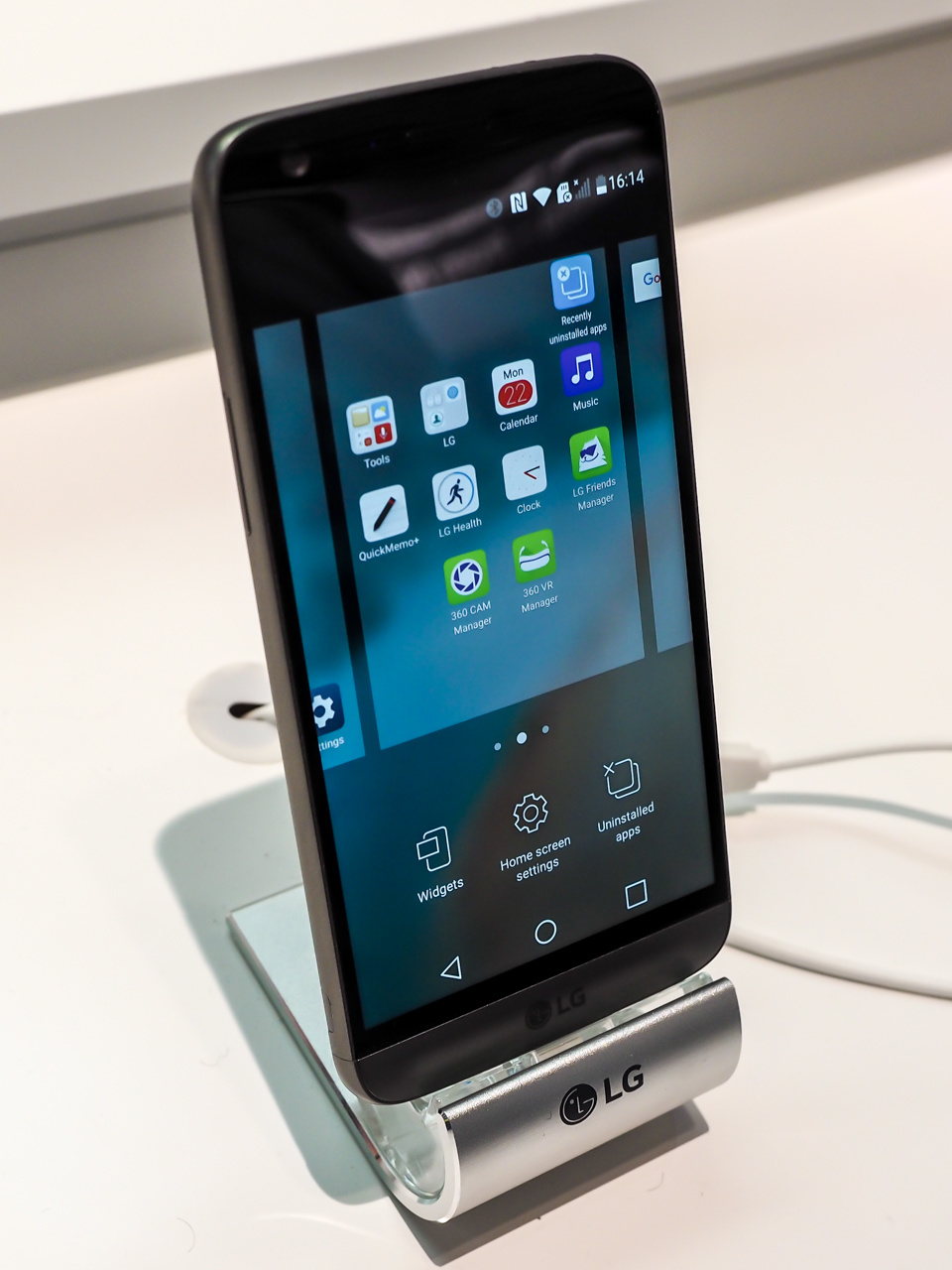 Смартфон LG G5 на стенде LG выставки MWC 2016 действительно представили. И они снова смогли удивить. Потому что это совсем не развитие того же LG G4. Это шаг в несколько другом направлении.