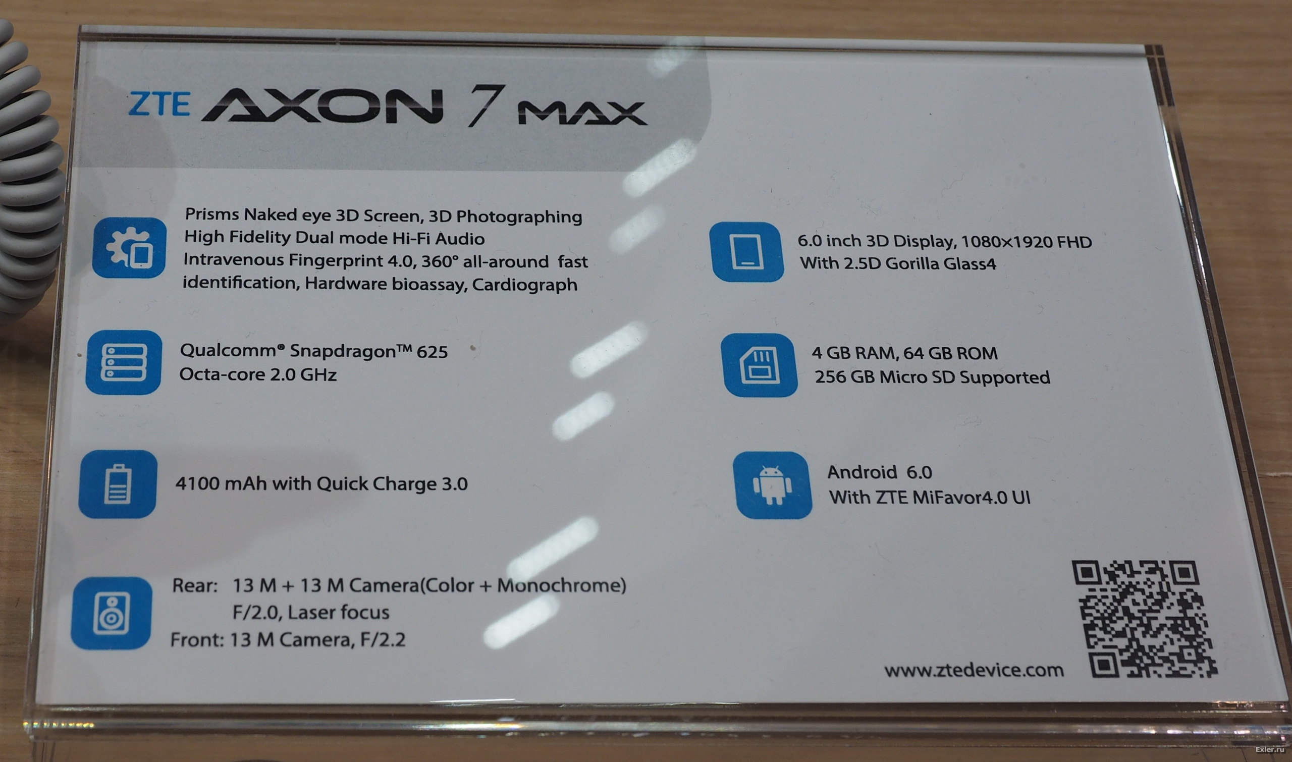 zte axon 7 max интересный. naked eye 3d screen не заценил? про hardware bioassay не понял и intravenous fingerprint - разве правильно (всмы, по-анлийски)? но круто, а то обычный отпечаток легко подделать. еще бы проц на 7-10нм, вообще бомба бы была. но аккум неплохой. интересно, сколько стоить будет.
