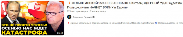 На мой взгляд, подобное предположение не выдерживает никакой критики, но я до этого несколько раз пробовал слушать Фельштинского, и его аналитика мне казалась, скажем так, очень неубедительной. Историк он хороший, насколько я знаю, а вот как аналитик... Достаточно сказать, что Фельштинский уже где-то с год утверждает, что Путин, дескать, решился шваркнуть ядерной бомбой, и что вот прям завтра он нанесет куда-нибудь ядерный удар. Путин ударит по НАТО и все такое.