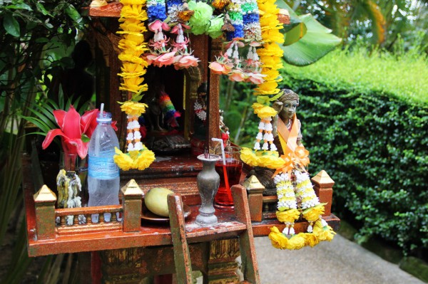 Оказывается, это такой специальный домик для духов. Если построить такой домик, украсить его и оставлять духам еды и напитков, они будут хорошо относиться к жилищу, рядом с которым домик построен. Поэтому эти домики есть практически везде.