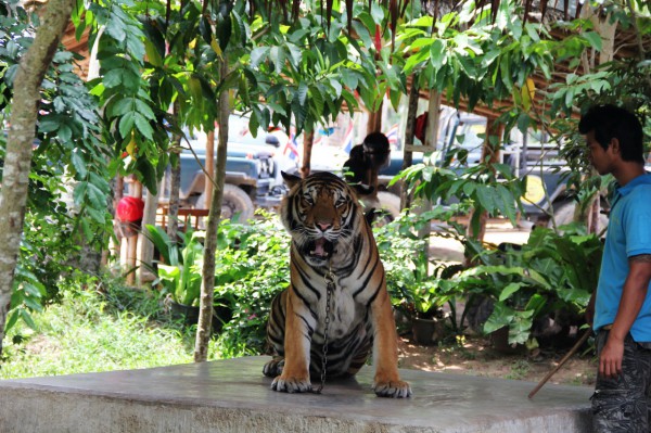При входе гостей приветствовал эффектный тигр, с которым можно было сфотографироваться с минимальным риском лишиться скальпа, а также маленький леопардик, которого я не сумел сфотографировать, потому что там толпилась куча народу, а некоторые немки, занимающиеся профессиональной съемкой на айфоны, вели себя очень грубо.